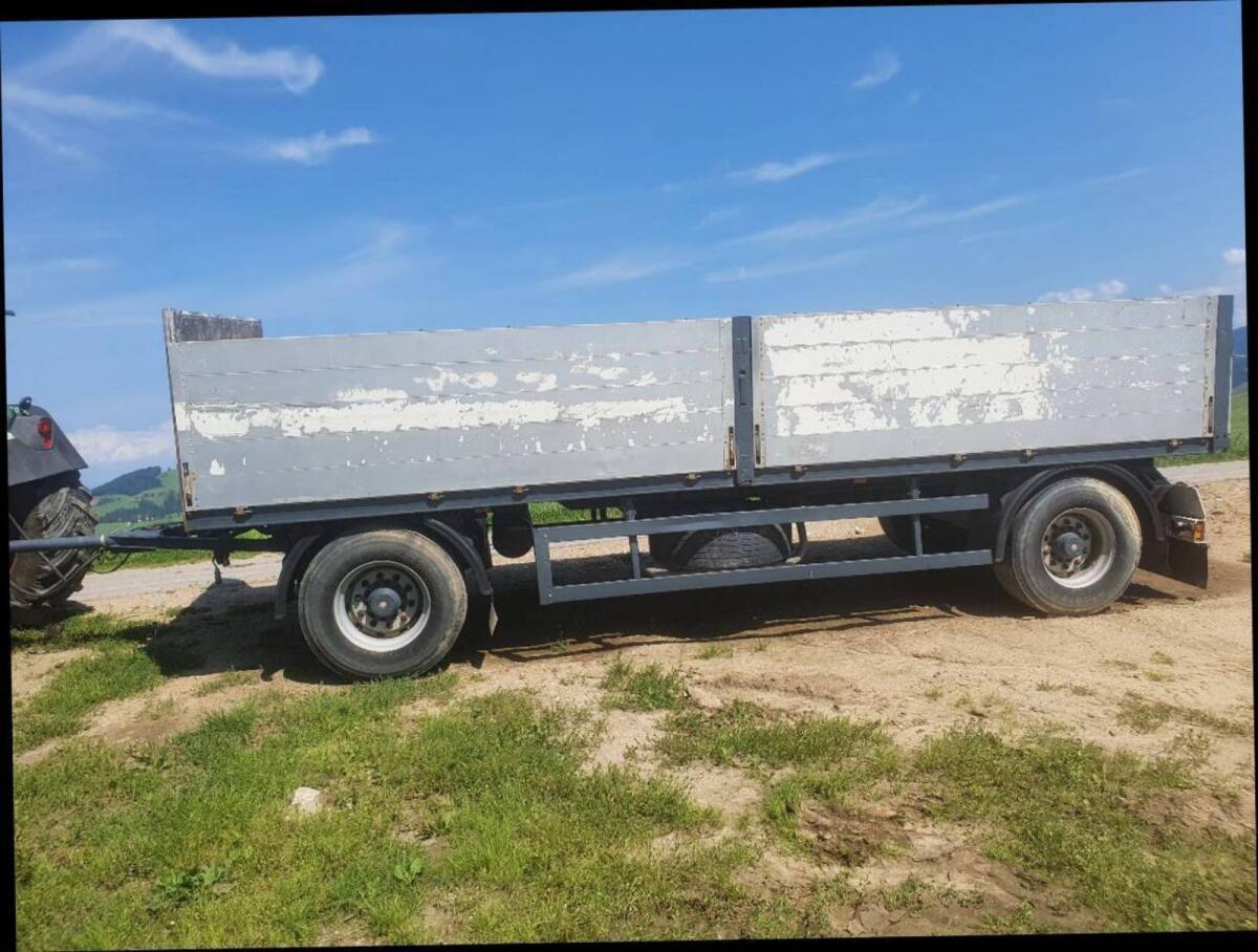 Zwei-Achs-Anhänger in gutem Zustand abzugeben. Blattfedern, Lichtanlage erneuert, mechanische Bremse. Alles funktioniert. Ladefläche 150 x 387 cm. Anhänger LKW-Anhän
