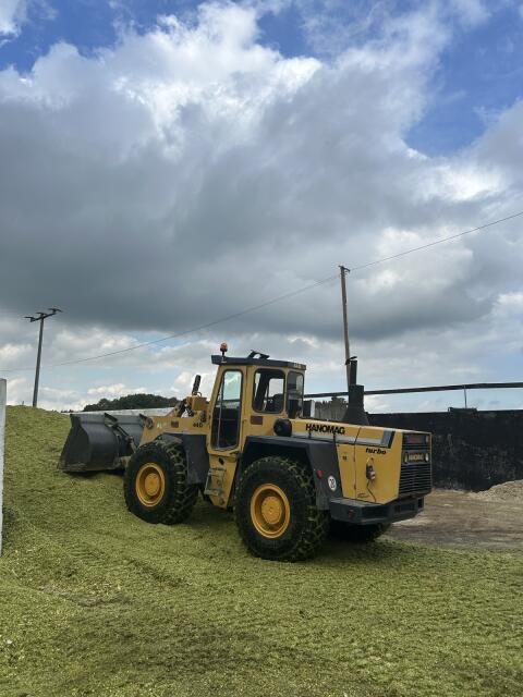 Hanomag 44D, Bj. 1992, Reifen im Top-Zustand, größere Schaufel von 55d verbaut, vorgesteuerter Bedienhebel, keine Undichtigkeiten, Hubzylinder abgedichtet. Bei Inter