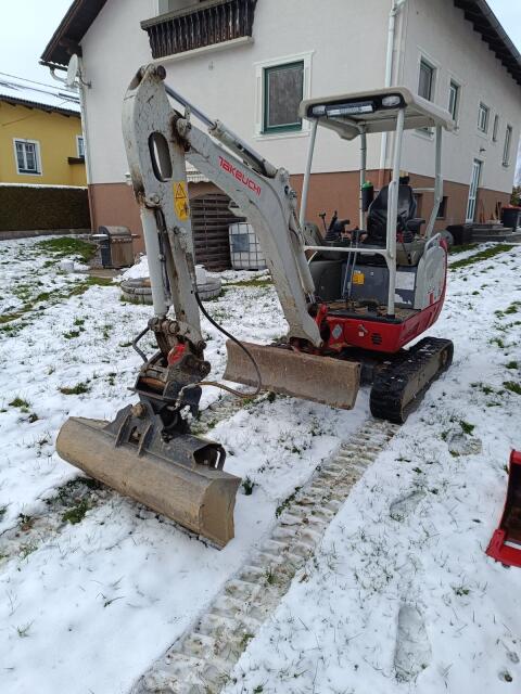 Verkaufe meinen Takeuchi TB216 wegen Umstieg auf Bagger mit Powertilt. Ketten 80 %, Löffel 100, schwenkbar 60 und 30. Letztes Service mit 1.000 Bstd. Bei weiteren Fr