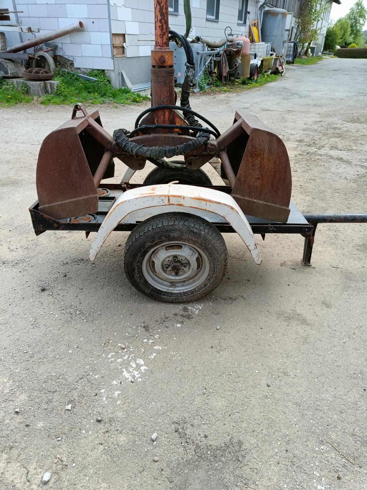 Zwickzange und Einachs-Anhänger, ca. 1/4 m³ Füllvolumen. Keine Garantie, Gewährleistung und Rücknahme. Weiter Auskunft unter bitte melden. Baumaschinen Bagger-Anbauw