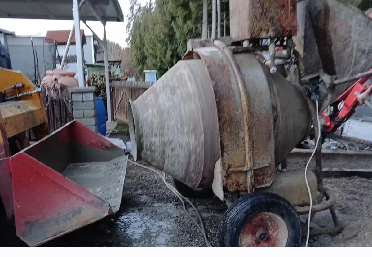 Großer Betonmischer wird nicht mehr benötigt. Kann mit Traktor überstellt werden. Starkstromanschluss. Privatverkauf ohne Garantie und Gewährleistung. Baumaschinen B