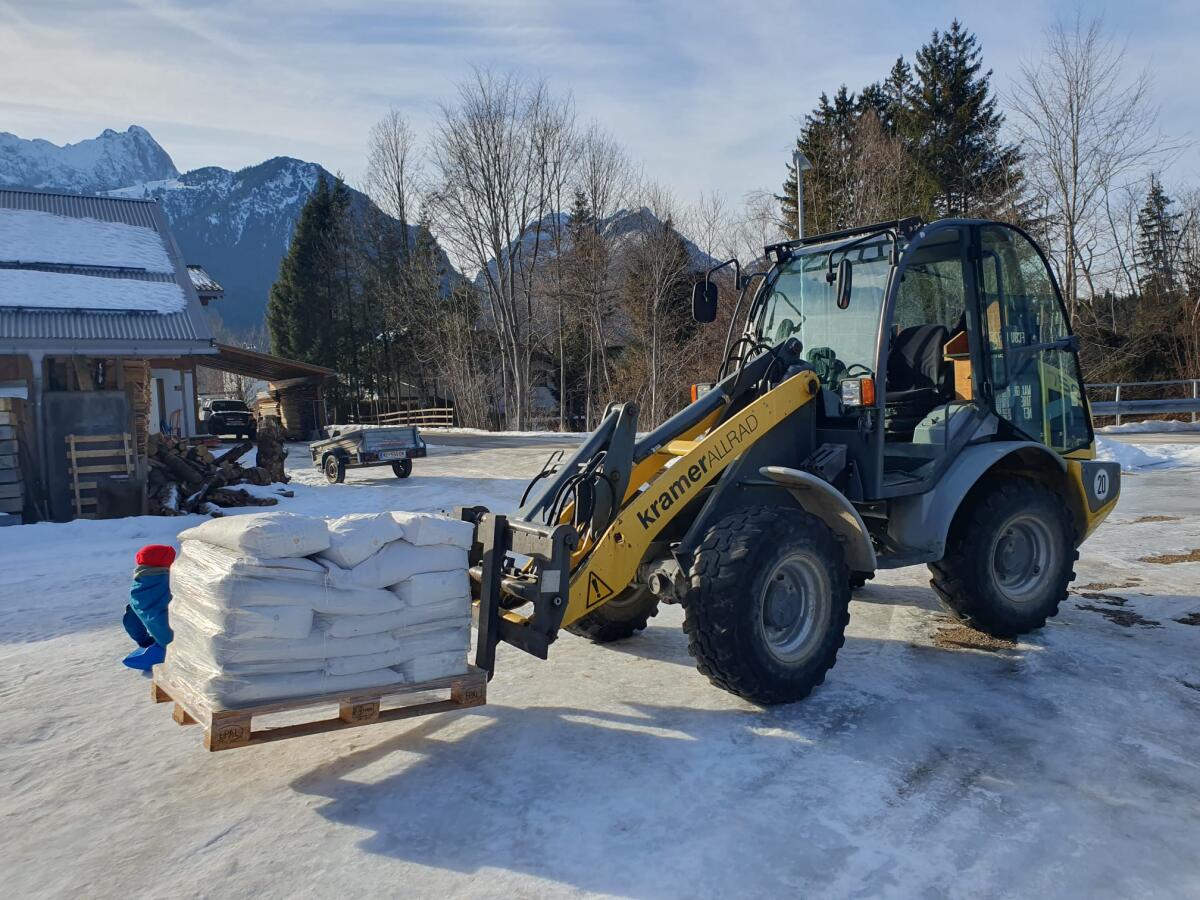 Verkaufe Kramer Allrad 5040, Allradlenkung, hydr. Schnellwechsel, Breitreifen, 1 Paar Schneeketten (neu), 3 Steuerkreis, inkl. 1, 6 m Leichtgutschaufel und Palettenga
