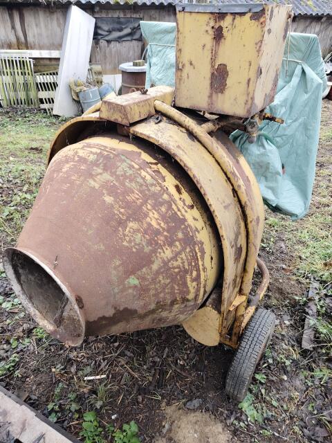 Großer Betonmischer wird nicht mehr benötigt. Kann mit Traktor überstellt werden. Starkstromanschluss. Privatverkauf ohne Garantie und Gewährleistung. Baumaschinen B