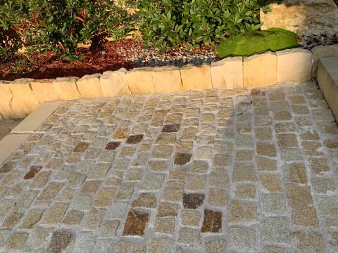 Pflastersteine Granit gelb-grau Feinkorn, gespalten. Pflastersteine 8/11, 1 t ca. 4, 8 m², € 270, -/t. Gr. 4/6, 1 t = ca. 8 m², € 288, -/t. Gr. 15/17, 1 t = ca. 2, 5 m²,