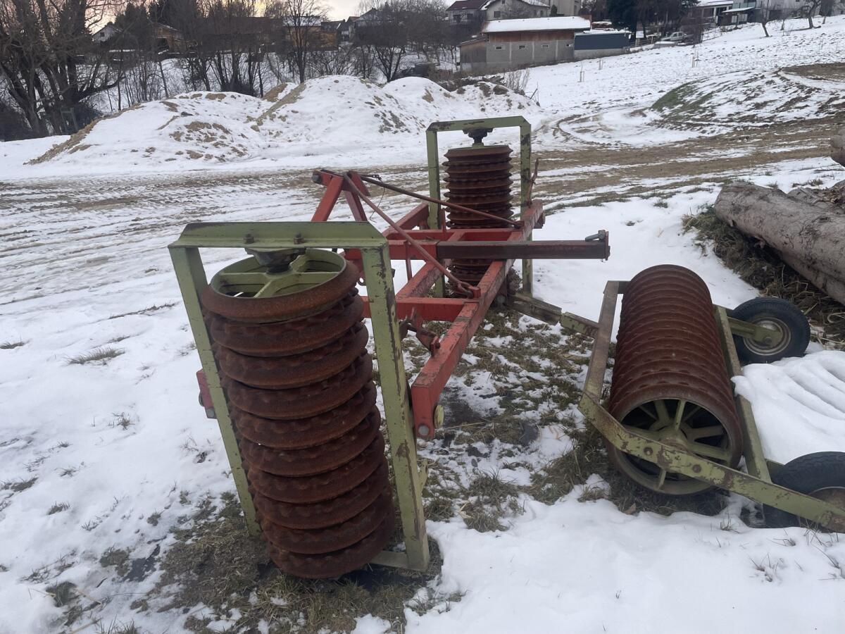 AB 3 m, aus original Teilen vom ehem. Regent Werk, mit sperrbarem Trapezlenkrahmen, mit original Niaux Industriehof Wellscheibenwalzen. Bodenbearbeitung Walzen/Packe