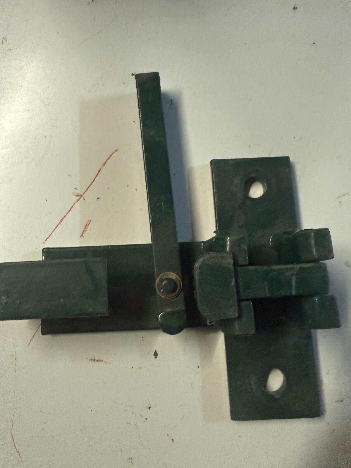 12 Stk. Zaunbau/Anbauteile mit Schloss, 200 x 50 x 7 mm, Lasche 50 mm abstehend, Bohrlöcher 10 mm, lackiert, intelligente Sicherheitsverriegelungsschloss 130 x 120 mm, Aufnahme für Schloss 20 x 20 mm. Fixpreis € 36,- frei Haus zugestellt.