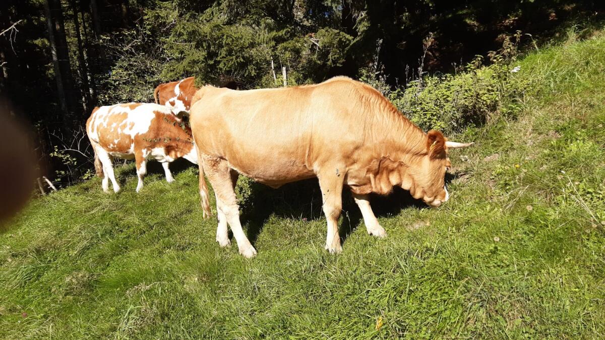 Abkalbetermin ca. 10.11.2025. Kalbin 1: Geburtsdatum 10.12.2023, Gewicht ca. 600-650 kg. Kalbin 2 (Fleckvieh x Limousin): Geburtsdatum 2.8.2023, Gewicht ca. 600-650 kg. Weide- und Anbindehaltung.