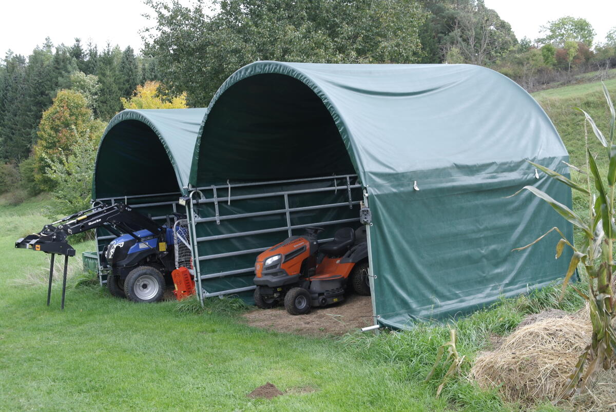 Wir verkaufen 2 Weidezelte, je 3,6 x 3,0 m, mit Dachplane und integrierten Seitenwänden und Rückwand mit Windschutzeinsatz oben, sowie je ein zusätzliches Panel 3,60 m mit Tor auf der Vorderseite (ist auf der Abbildung nicht vorhanden, da wir dieses nicht montiert hatten), siehe Bild 3. Preis je Weidezelt auf Anfrage.