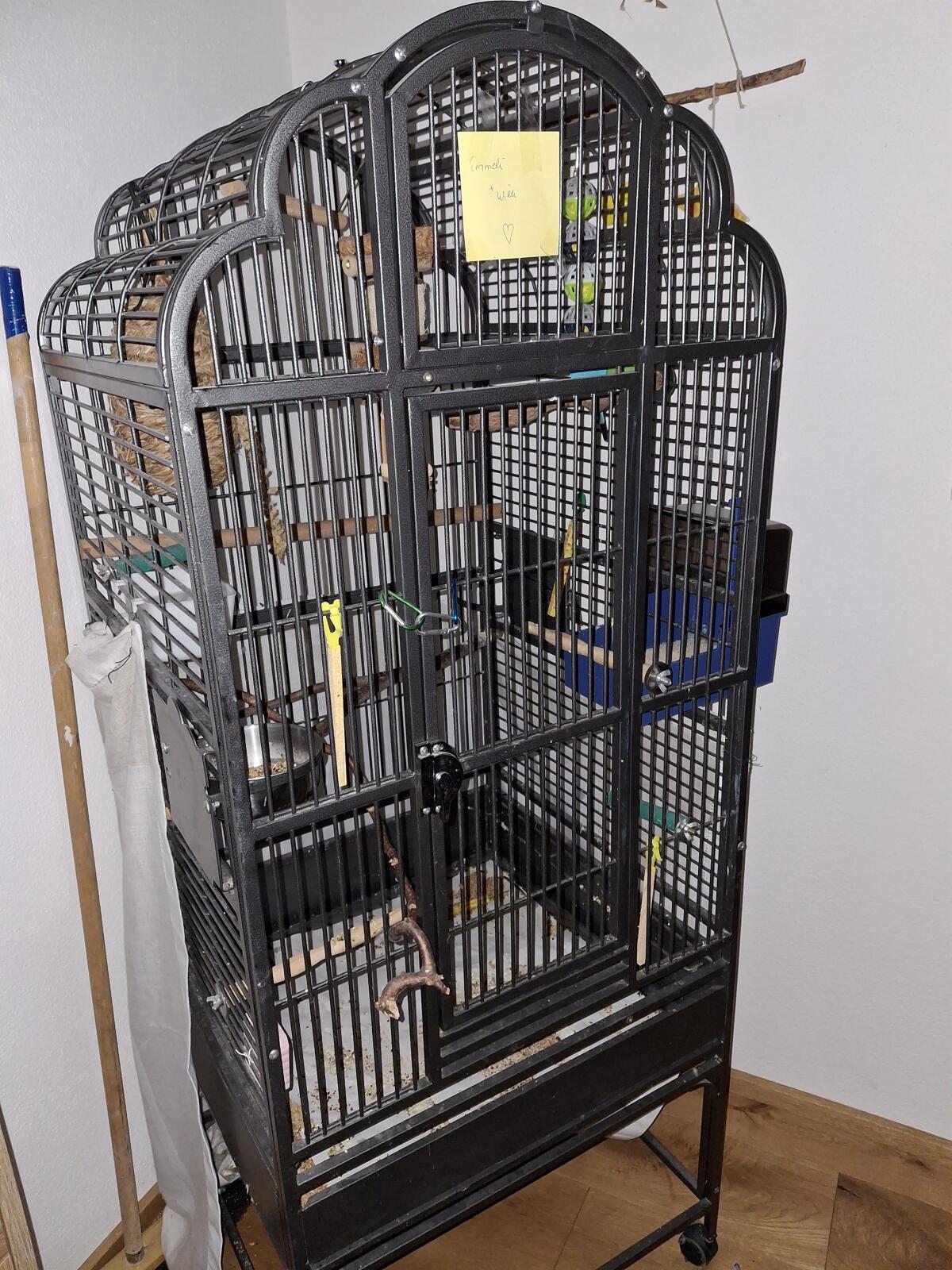 2 Wellensittiche inkl. großem Käfig und Zubehör