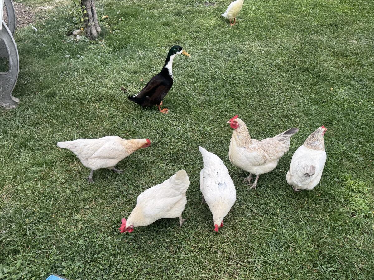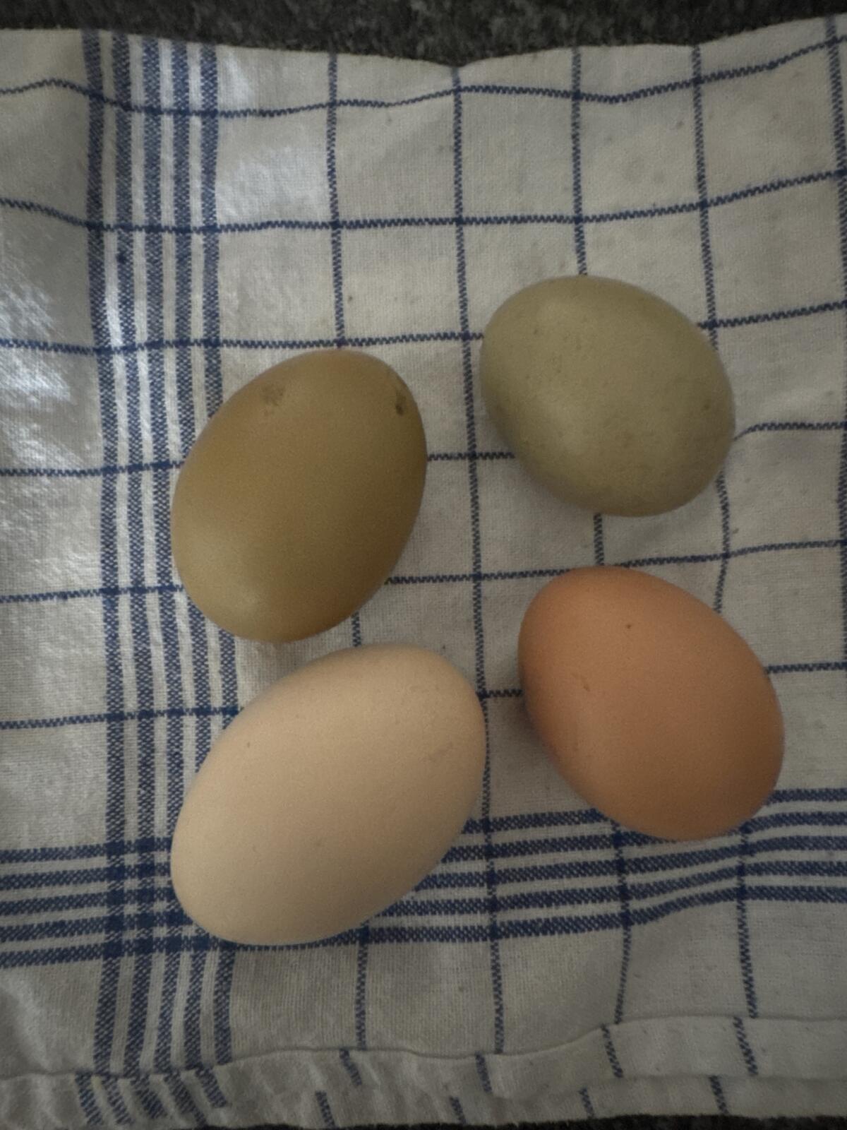 Verkaufe 5 Legehennen, 2 Junghennen 6 Monate, 2 Hennen 1,5 Jahre und eine ältere Dame. Alle legen schon, 2 Grünleger, 1 bräunliche Eier und 2 cremefarbene Eier. Nur in der Gruppe abzugeben, per Hand aufgezogen, alle sind sehr zutraulich.