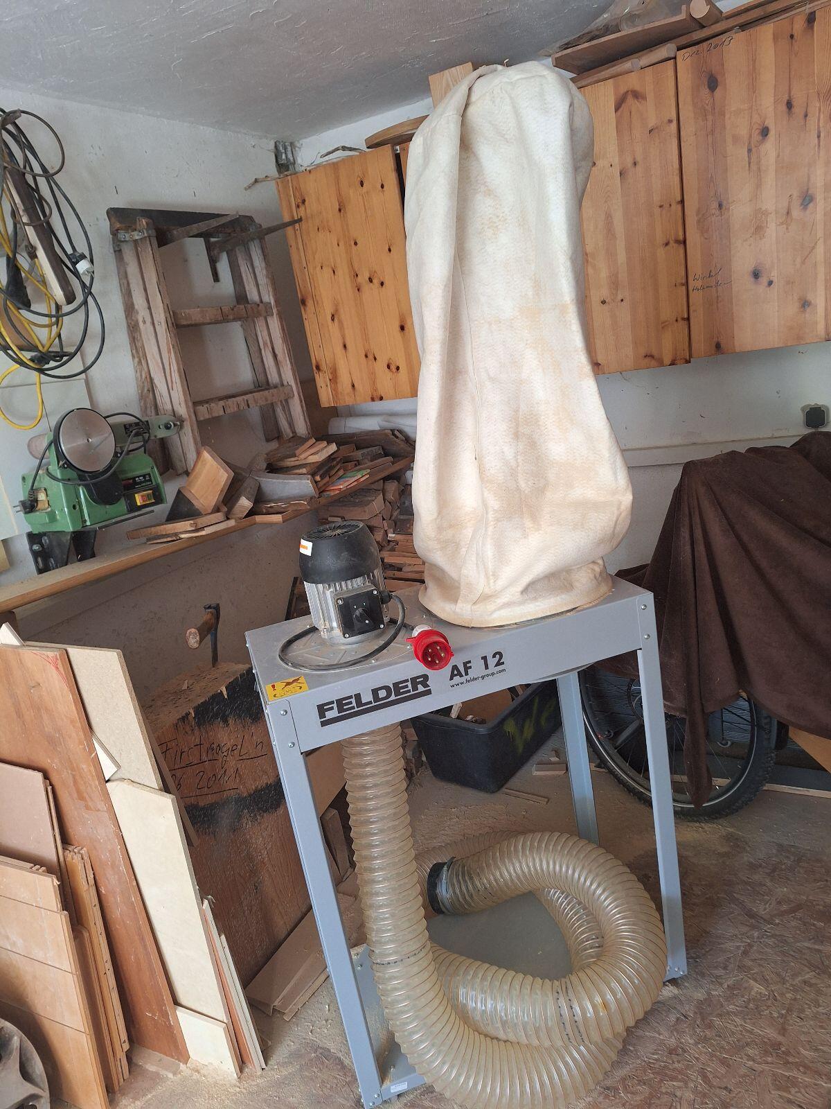 Zum Verkauf steht eine Absaugung der Marke Felder. Typ AF12, Spänesackinhalt 110 l, 400 V, 4,5 m Absaugschlauch (120 mm), inkl. 8 Säcke. Preis VB.
