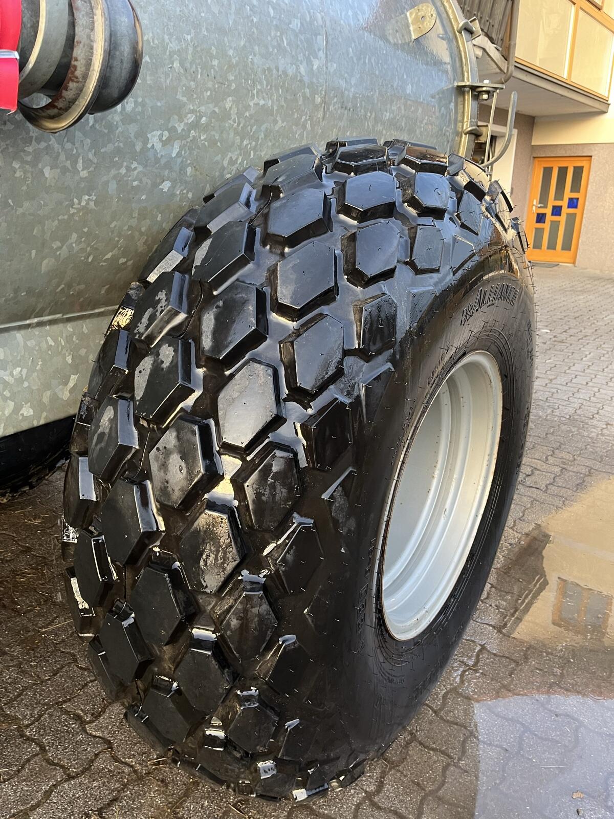 Neuwertig Kompletträder für Güllefass, Reifendimension 23.1, 26 Alliance 330 Heavy Duty, Felgenhersteller: Trinker, Felgengröße 20 x 26 8 Loch, Mittelloch 220 mm, Lochabstand: 275 mm, Abrollumfang: 4.545 mm, Tragfähigkeit: 5.600 kg bei 40 km/h und 2,3 bar Reifendruck. Außendurchmesser 1.560 mm, Reifenbreite 587 mm. Wurden nur für eine Überstellungsfahrt verwendet. Preis pro Stück.