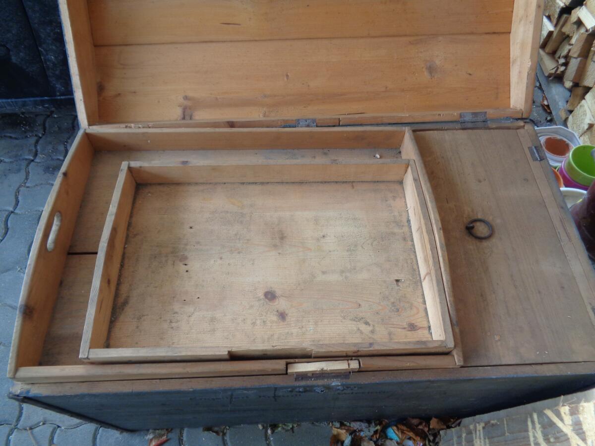 Dachbodenfund nach Hauskauf! Holztruhe eines 1959 verstorbenen Veterinärs samt Inhalt wird zum Verkauf angeboten. Die Kiste dürfte seit 1959 verschlossen gewesen sein. Die Instrumente von ca. 1910-1959 waren allesamt in alten Zeitungen eingewickelt. Leider musste das Schloss gewaltsam aufgebrochen werden, 1 Schlüssel befand sich in der Kiste. Abgabe nur des gesamten Konvoluts! Nur Selbstabholung.
