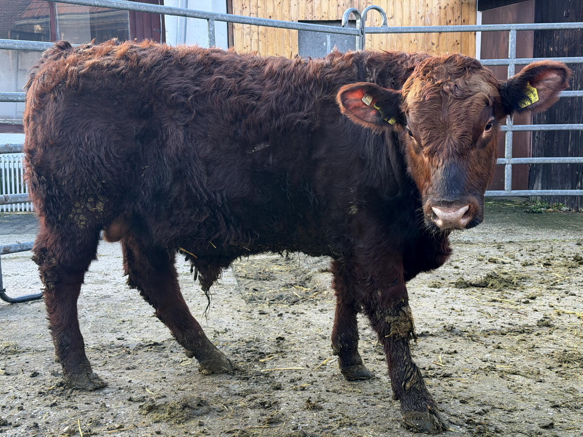 Biobetrieb verkauft 3 Angus Zuchtstiere mit Papieren. Zwei roten und einen schwarzen Stier. Alle drei sind im Mai 2.025 geboren. Tageszunahme 1.300-1.500 g.