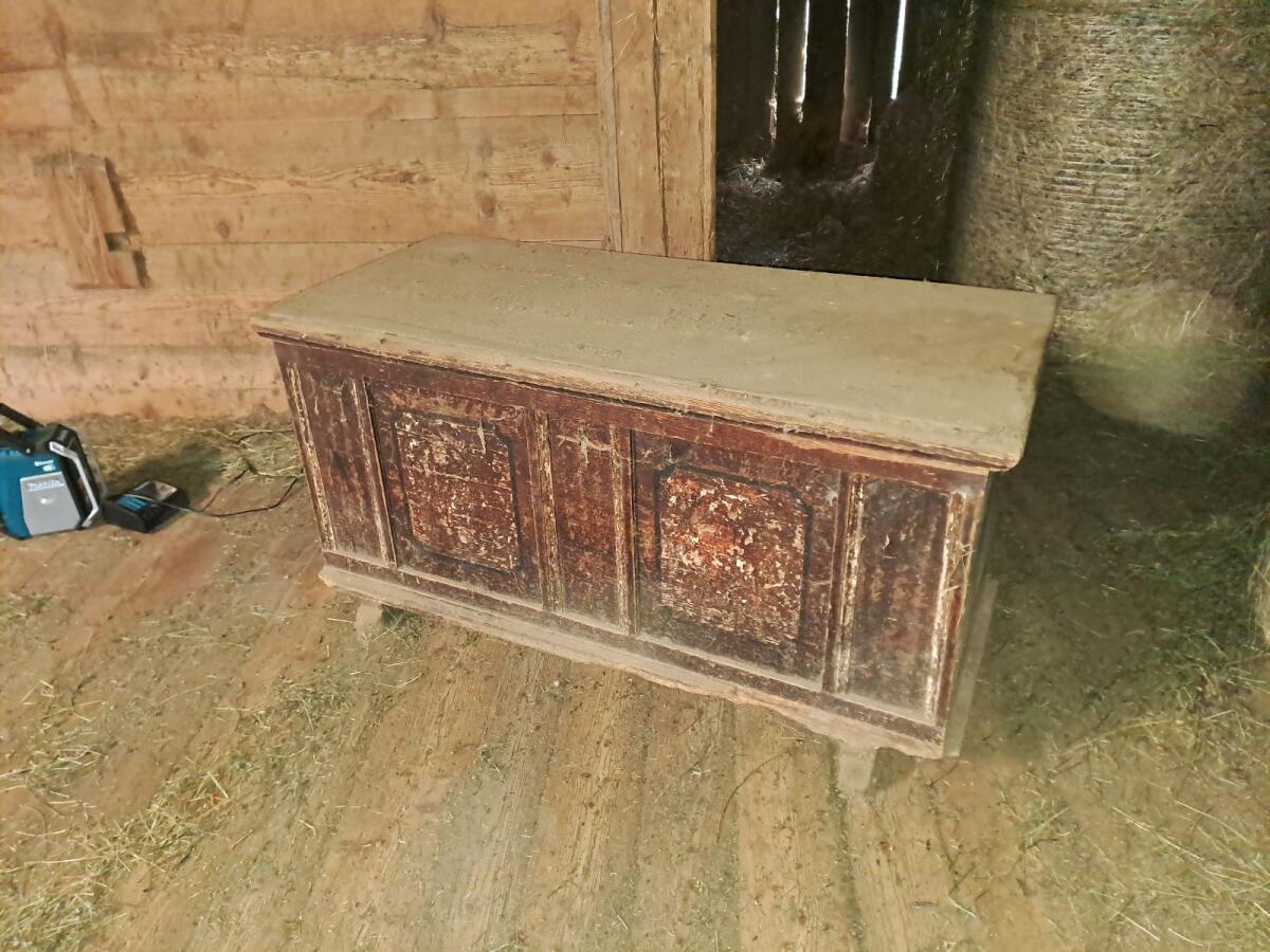 Antike, alte Truhen abzugeben. Die bemalte Truhe besitzt ein Geheimfach. Lieferung gegen Aufpreis möglich. VB.