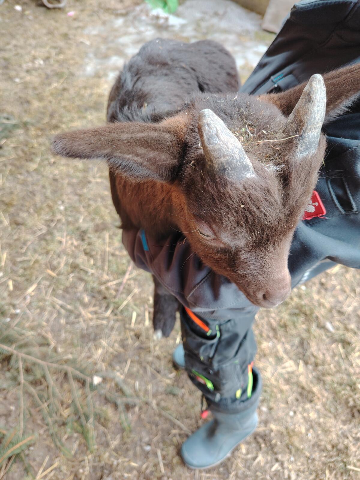 Verkaufe Aoster Mischlingsziege mit sehr starkem männlichem Kitz.
