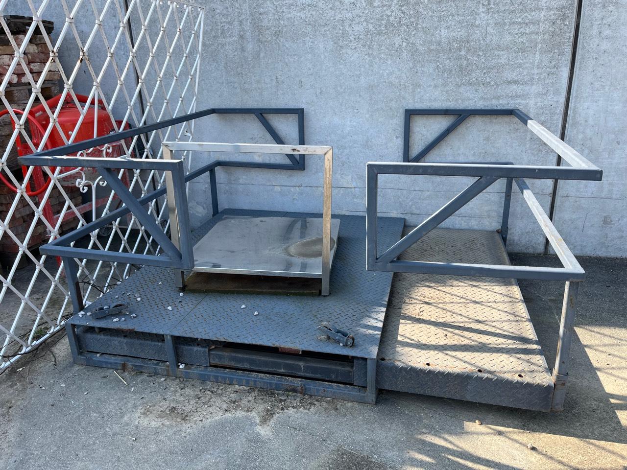 Verkaufe Arbeitsbühne, Arbeitsplattform, Erntebühne, Arbeitskorb ohne Untergestell/Fahrgestell. Breite eingefahren: 160 cm, seitlich je 80 cm ausfahrbar. Länge 200 cm. Ideal für alle Arbeiten, auch für Stapler/Teleskopladermontage. Massiver Eigenbau, wegen Ankauf eines fertigen Bühnenanhängers nahezu unbenutzt.