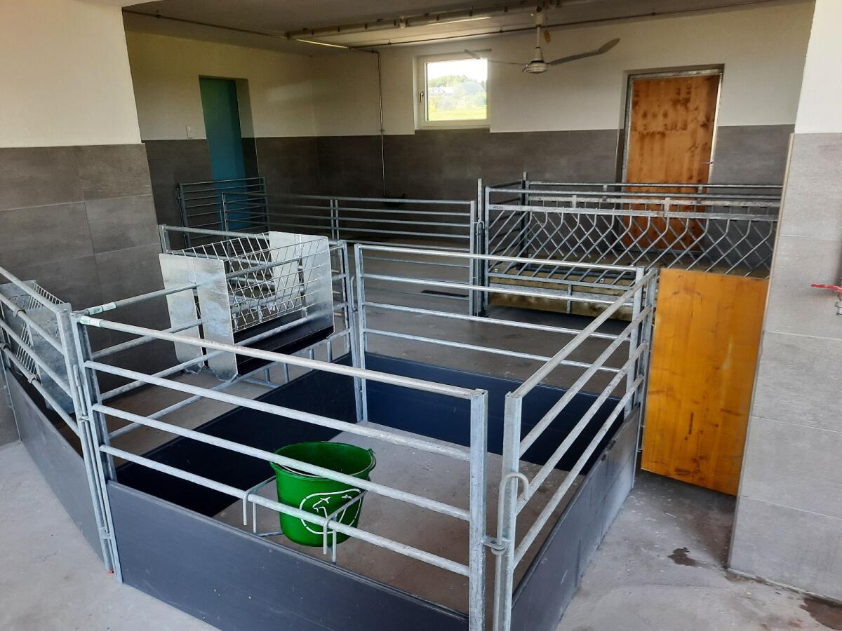Verkaufe Aufstallung Veno für Schafe, Futterbarren, Ablammbox, verschiedene Abtrennungen wegen Betriebsaufgabe. Nur 2,5 Jahre in Betrieb.