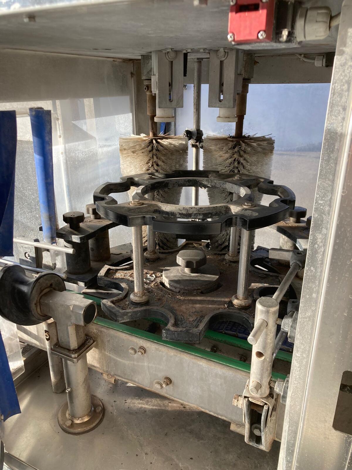 Cames Außenreiniger für Flaschen, Bj. 2007, Ausführung: Inline-Maschine für bestehende Abfülllinien, Konstruktion: Robuste Industrieausführung, Edelstahl, beschichtete Stahlkomponenten, Reinigungssystem: Bürstenreinigung, Medien: Wasser (ggf. mit Reinigungsmittel), Zustand: Gebraucht, Technisch voll funktionsfähig, Alters- und gebrauchsbedingte Abnutzung vorhanden.