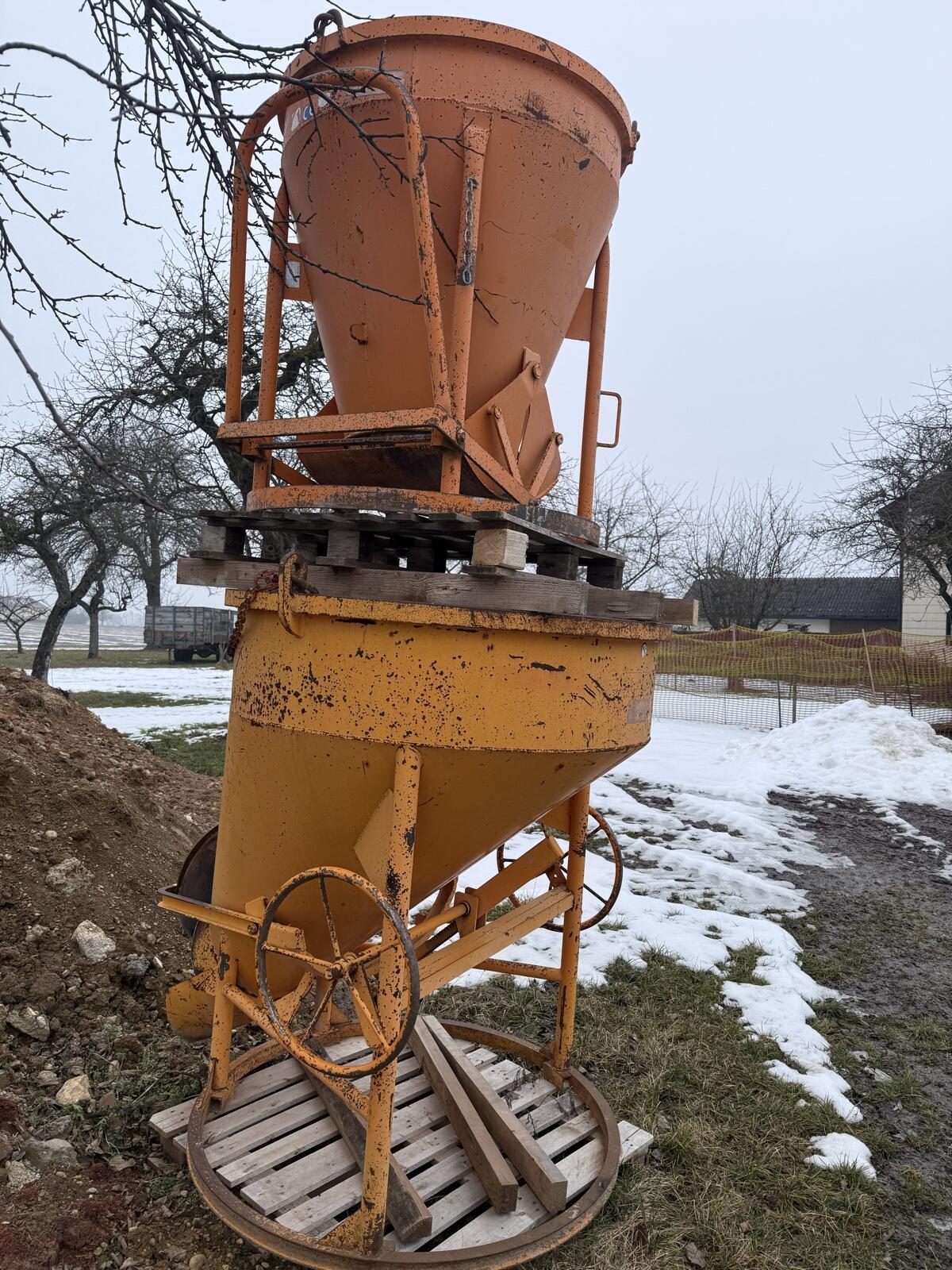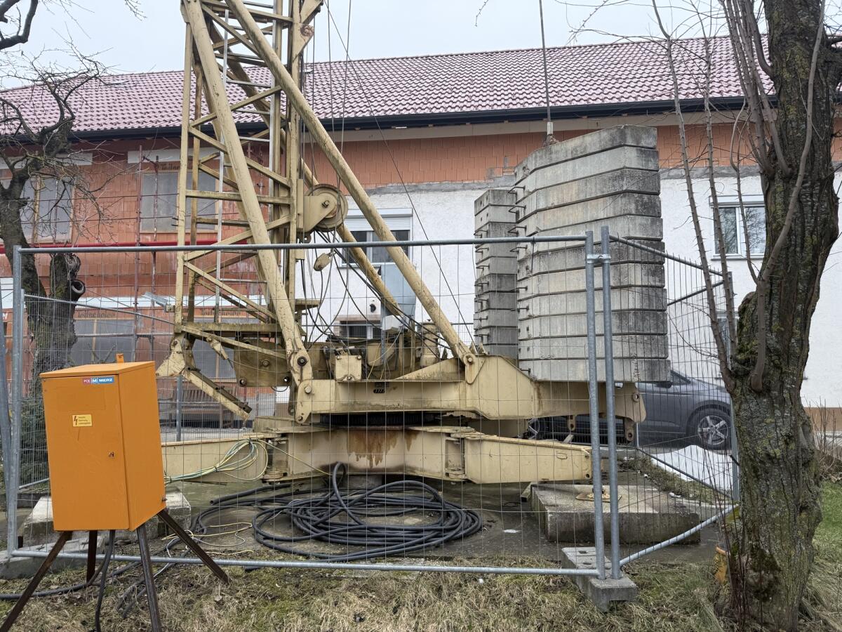 Verkaufe gebrauchten, voll einsatzfähigen Baukran der Marke Potain 331A. Ausladung 35 m, 850 kg. Bj.: 1987. Mit Funkfernbedienung inkl. Akkus und Ladegerät sowie Automatikgabel, Schuttmulde, Betonkübel 1.000 l, Betonkübel 500 l, 4-Strang Gehänge und 4x Betonunterlegsplatten. Letzte Abnahme gültig bis August 2025. Erneuert wurden im Frühjahr 2024 die Hubbremse sowie alle Lager in und am Hubmotor und im Ausgleichsgetriebe der Hubseiltrommel. Kran funktioniert mit 32 A Anspeisung, da der Hubmotor auf Frequenzumrichter umgebaut ist. Kranabbau muss vom Käufer organisiert werden. (Kontakt für Transportachsen sowie für Ab- und Aufbau kann hergestellt werden.) Preis: € 15.000,- VHB.