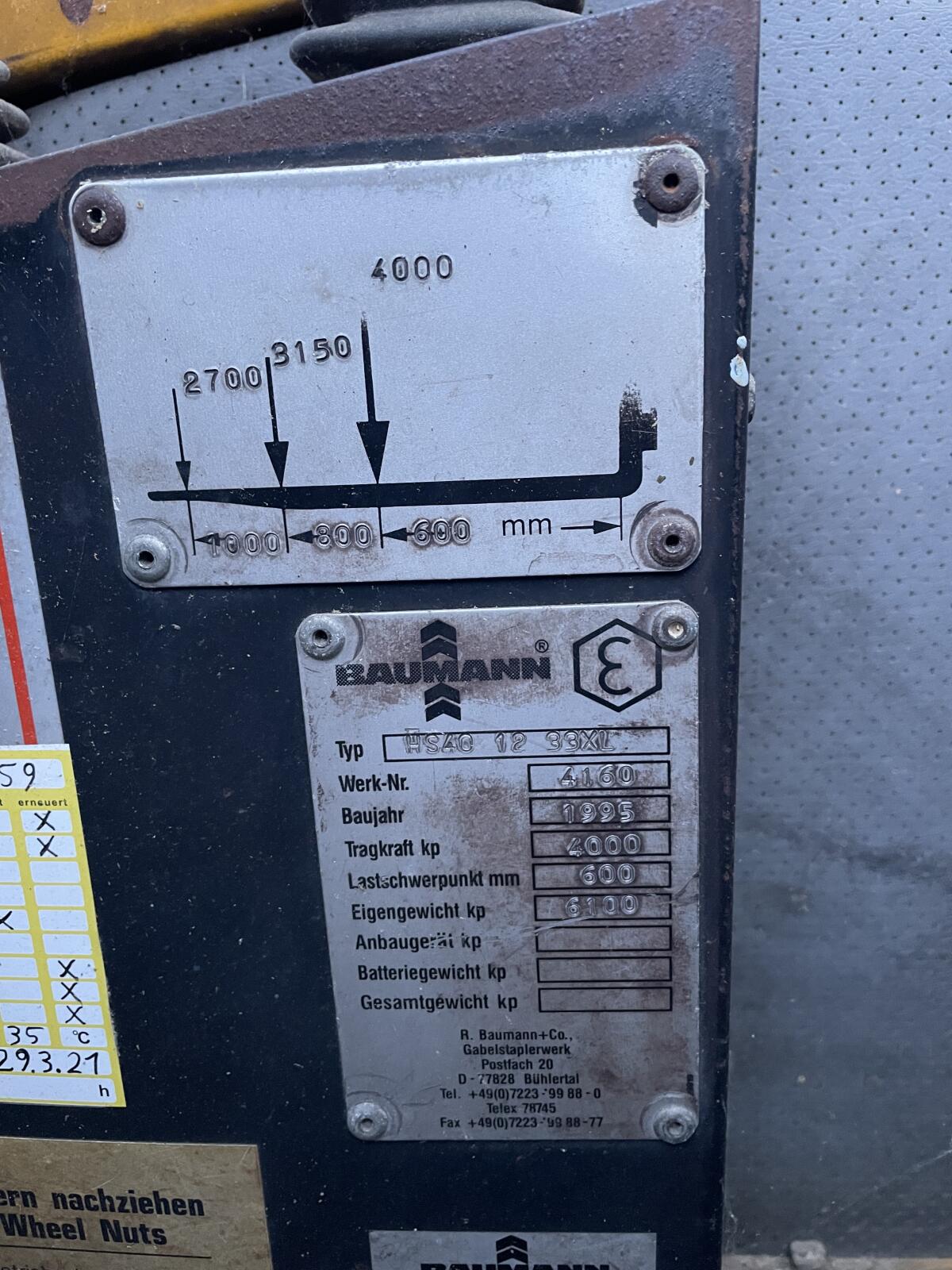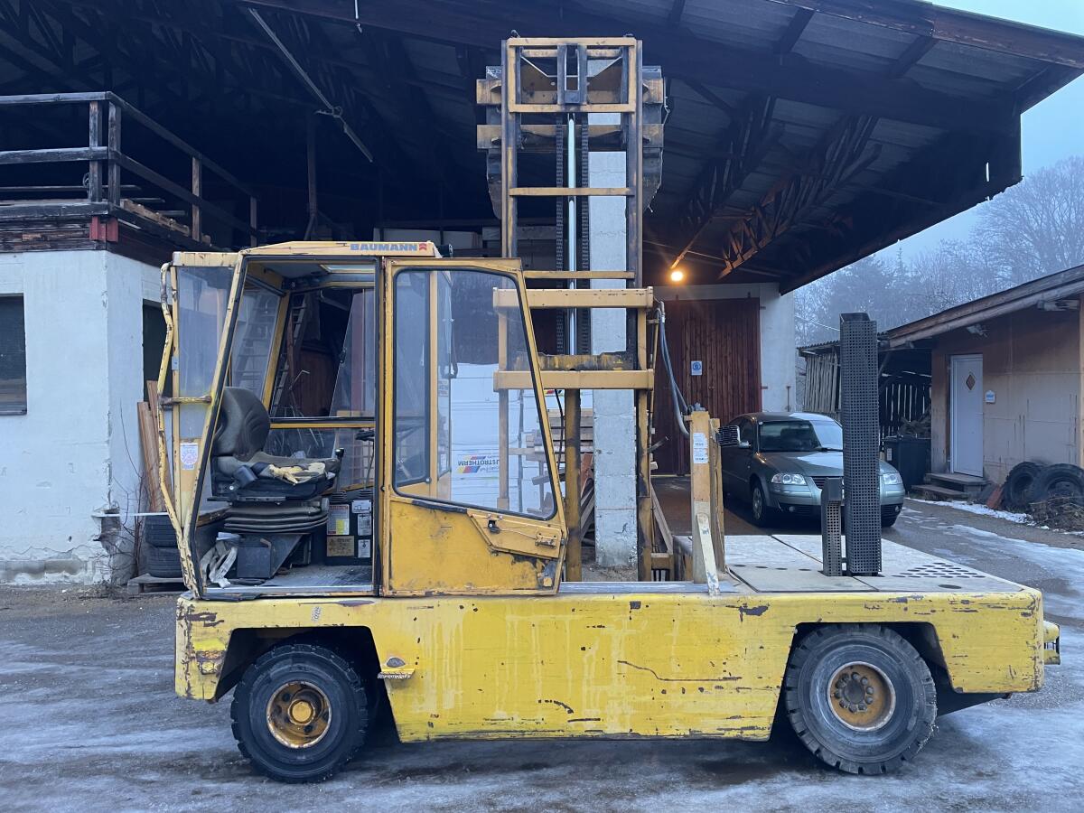 Verkaufe einen 4 t Baumann Seitenstapler. Er hebt, fährt und lenkt. Der Fahrantrieb rinnt auf einer Seite und steht schräg. Vor 100 Bstd. wurde der Motor und der Turbo repariert.