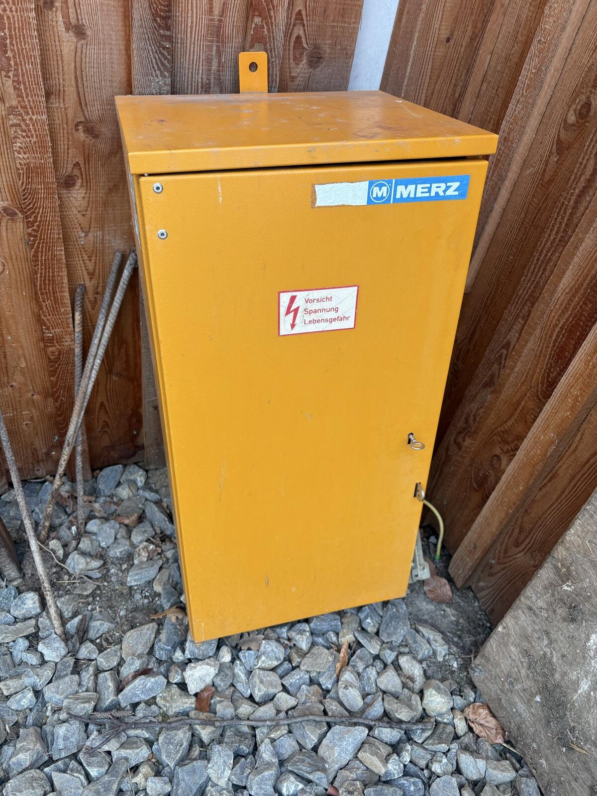 Baustromkasten mit Erdungsspieß, voll funktionsfähig.