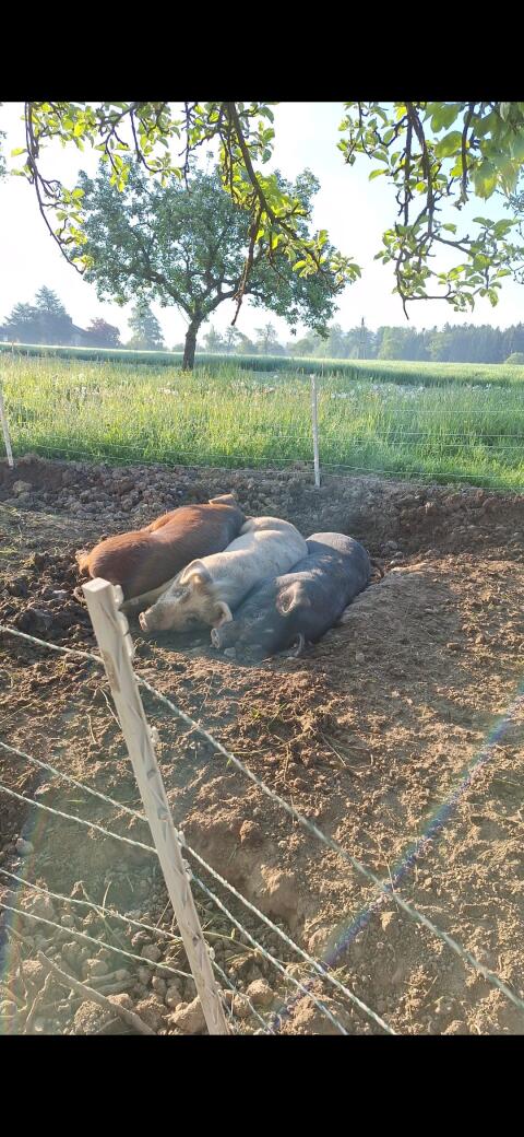 Extrem zutrauliche Berkshire Mastschweine aus Freilandhaltung ( Gras- Getreidefütterung) abzugeben. Derzeit 80-100kg. Bei Interesse gerne melden.