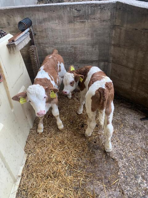 Verkaufe zwei schöne BIO Fleckvieh Kalbinen, sollen kalben am 29.1. und 27.1.26, gute Abstammung, Standort Nähe Zell am See. Bei Interesse bitte melden.
