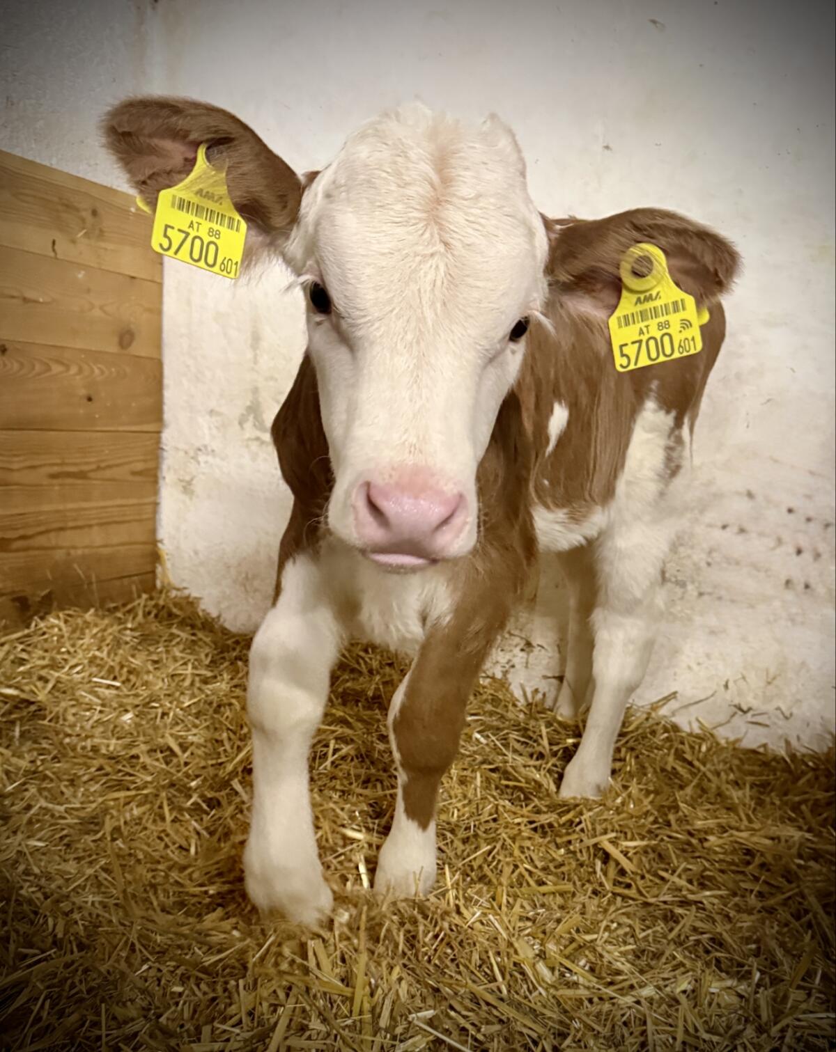 Verkaufe schönes Fleckvieh-Kuhkalb (genetisch hornlos) aus Bio-Heumilchbetrieb, Geburt: 02.01.2026, Vater: GS Magic Boy PP - ohne Abstammungsnachweis. Preis/kg VHB.
