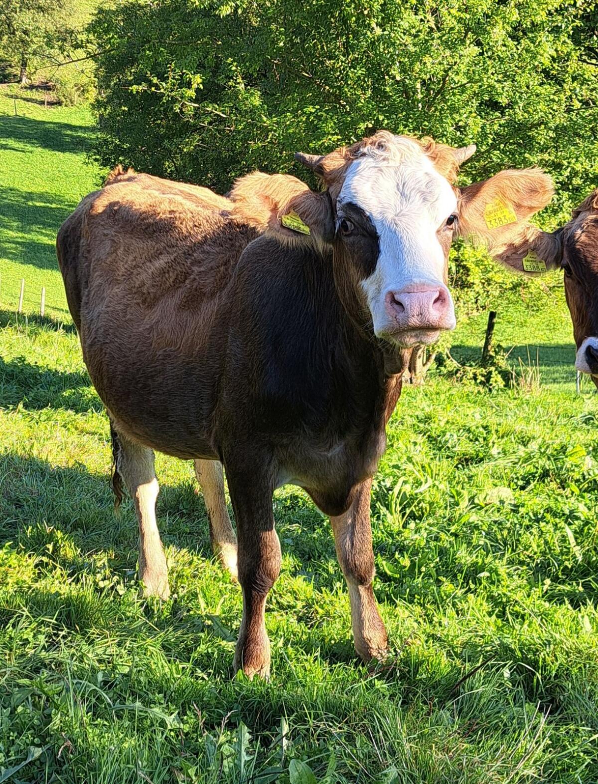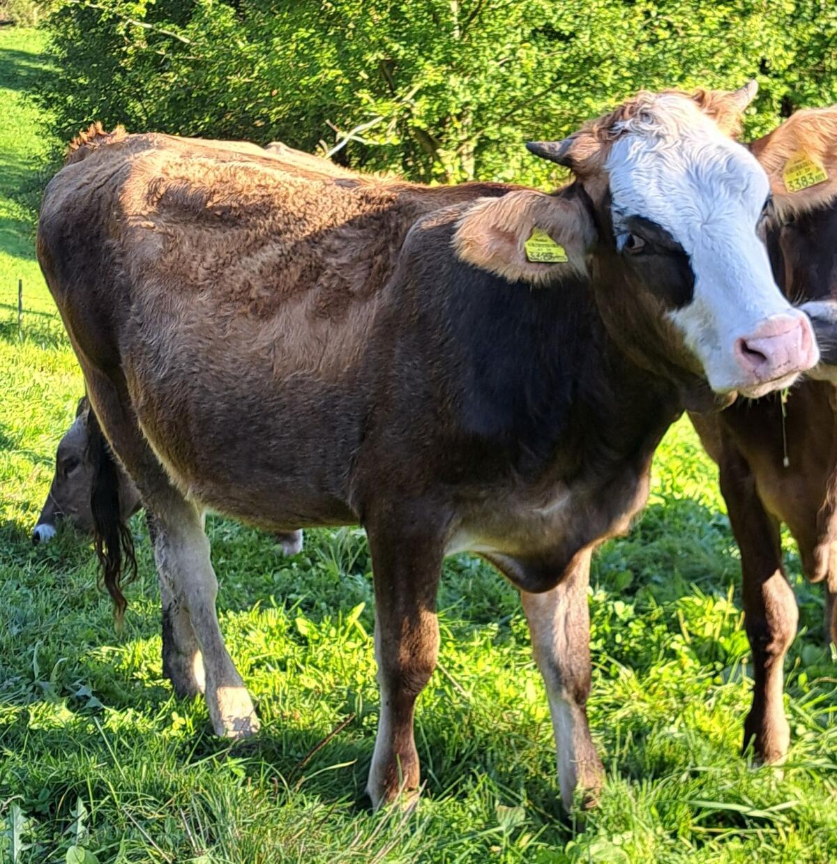 Bio Jungkalbin, Mutter Fleckvieh x Vater Braunswiss, 14 Monate.