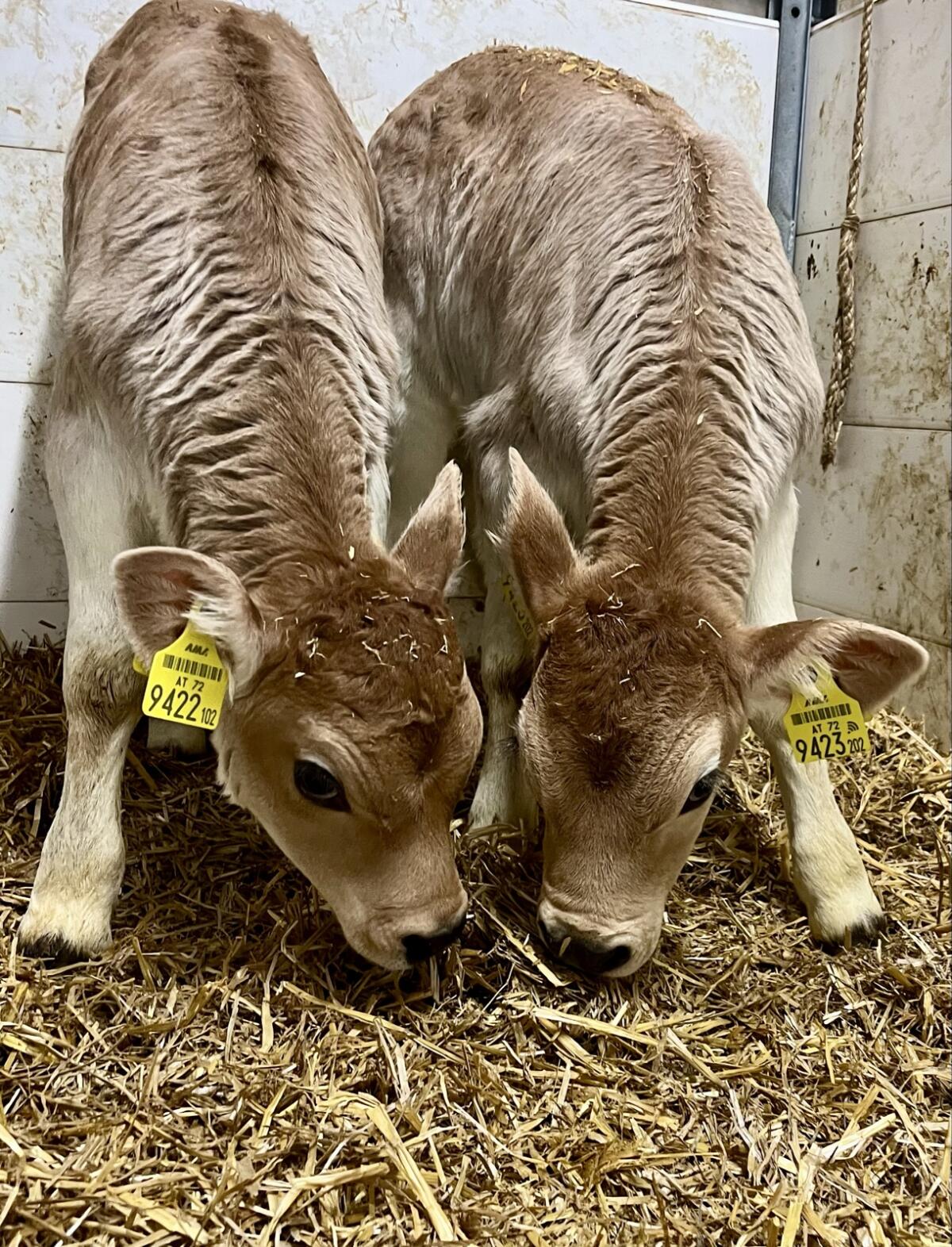 Verkaufen unser Kuhkalb, Bio, Zwillingspärchen „Emily&Emma“, beide topfit, trinken gut und gleichzeitig, Geb.: 06.02.2026, Vater: Goldberger, Gegen Aufpreis auch SNP-Typisierung möglich, Preis auf Anfrage.