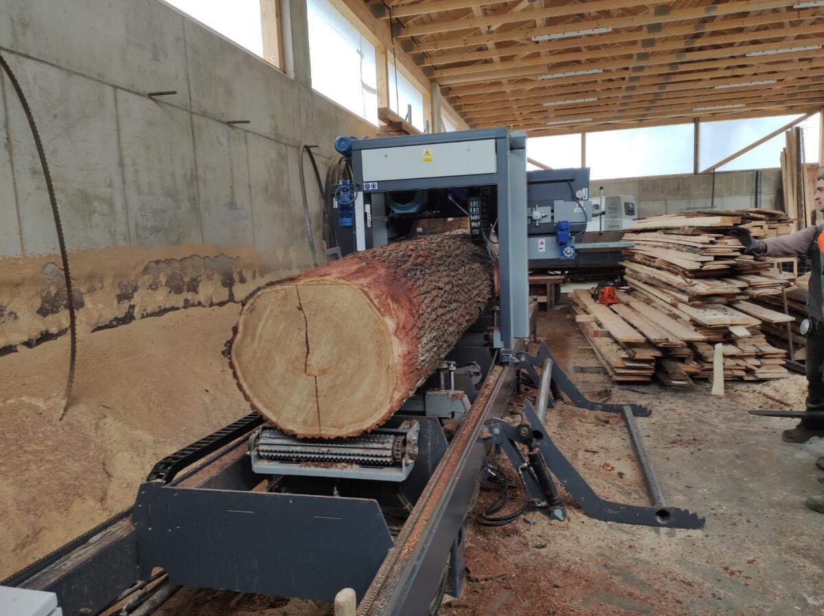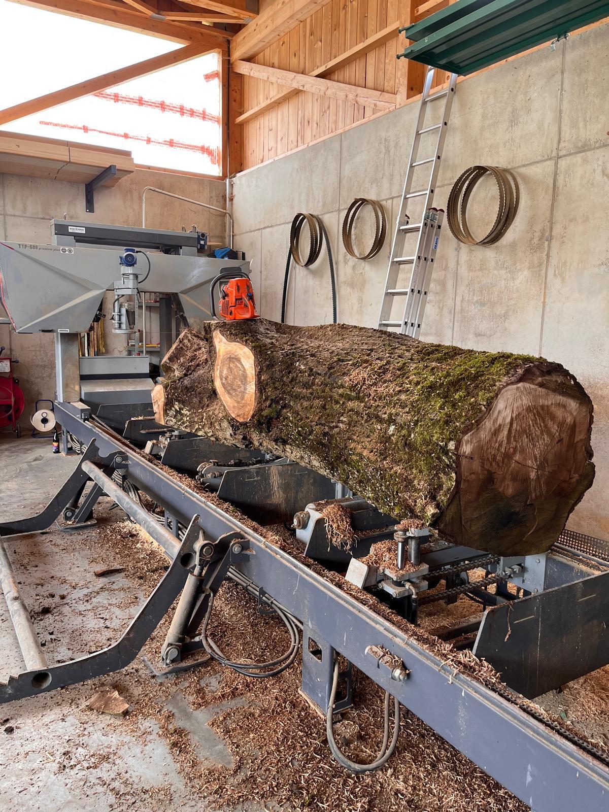 Verkaufe Blockbandsäge vom Hersteller Trak-Met Typ TTP 600 Premium, welche im Jahr 2021 neu angeschafft wurde. Inklusive vollautomatischem Schärfgerät und manuellem Schränkgerät, um stets ein optimales Schnittergebnis liefern zu können. Die Säge befindet sich in einem guten Zustand mit normalen Gebrauchsspuren. Aufbauen und lossägen! Sehr einfache, robuste und durchdachte Technik, wodurch der Schnittbetrieb schnell erlernt werden kann. Sägebett laut Hersteller mit 5 t belastbar. Die Bedienung erfolgt durch ein Bedienerpult, womit sämtliche Stammausrichtungen hydr. und die Steuerung des Sägekopfes voll el. erfolgen. Angebotsumfang: Blockbandsäge, Schleif-Schränkgerät, Sägebänder.