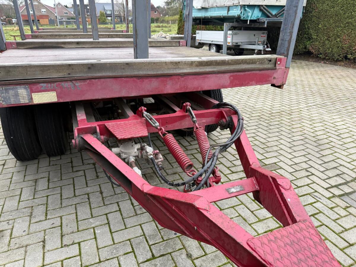 Blumhardt Pritschen/Plattformanhänger mit Steckrungen in sehr stabiler Ausführung!!Breite ca.2,40m und 8,25m Plattformlänge plus 1,60m ausziehbare Ladestütze.Die Zimmerei hat damit bis 13m Holz Transportiert.Ladefläche 1m hoch.