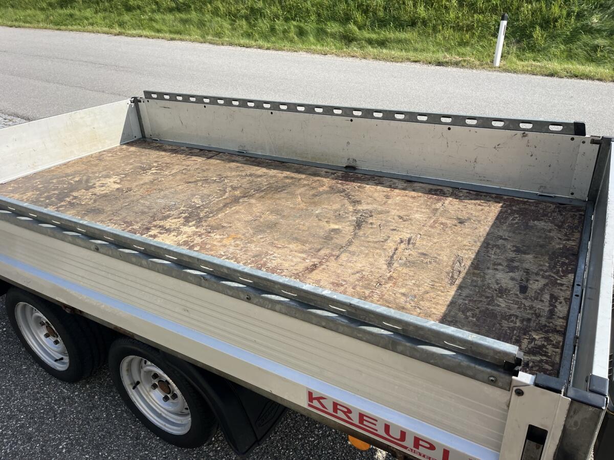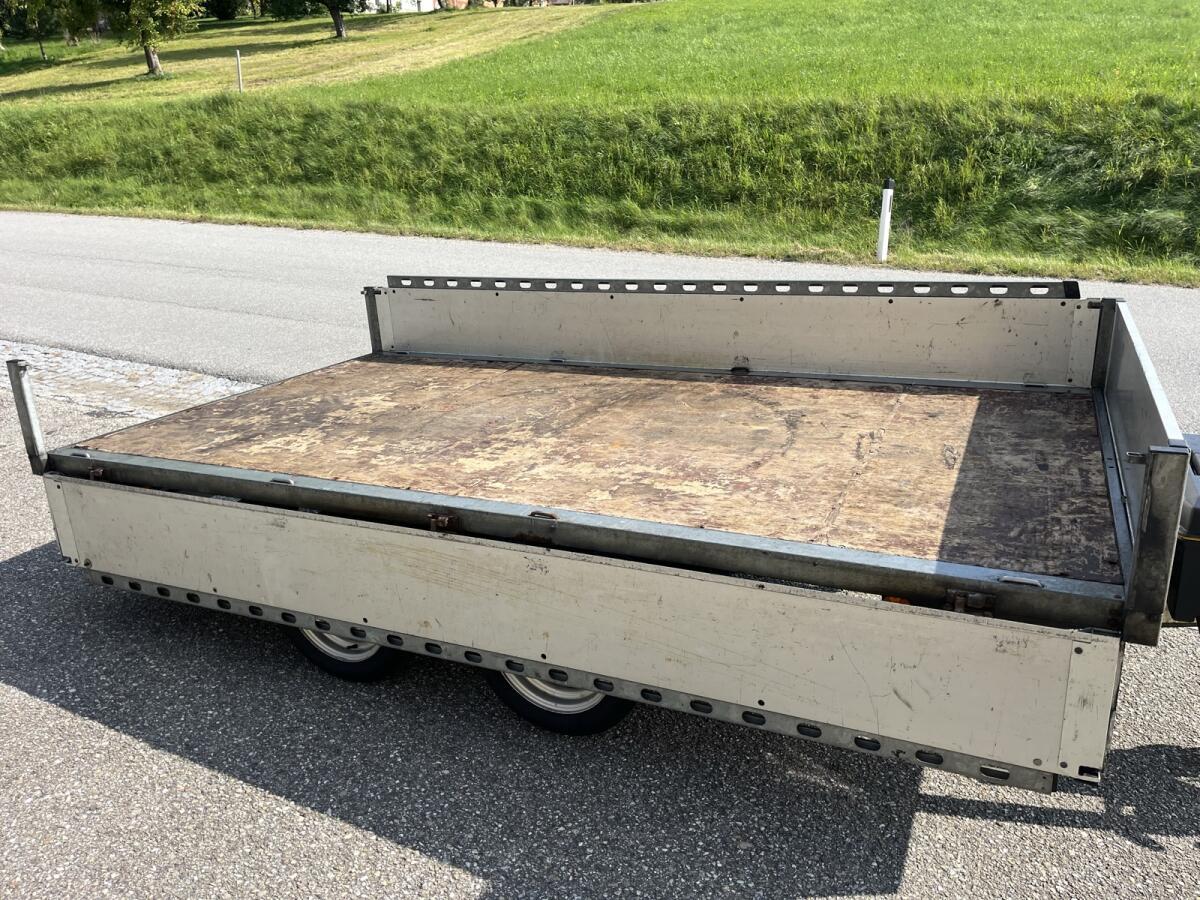 Verkaufe meinen Böckmann Tandemanhänger mit 2.000 kg Gesamtgewicht, Plattformabmessung 300x160 cm mit 30 cm klappbaren Alubordwänden, in letzter Zeit wurde die gesamte Bremsanlage samt Seilen erneuert sowie neue 13 Zoll Kompletträder verbaut, zudem kam ein neues Knott Zugmaul auf den Hänger und ein schweres Automatikstützrad. Hänger ist wie abgebildet in gutem Zustand und machte nie Probleme, wird mit abgebildeter Gurtenkiste verkauft.