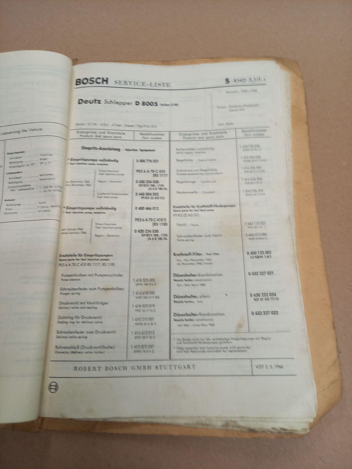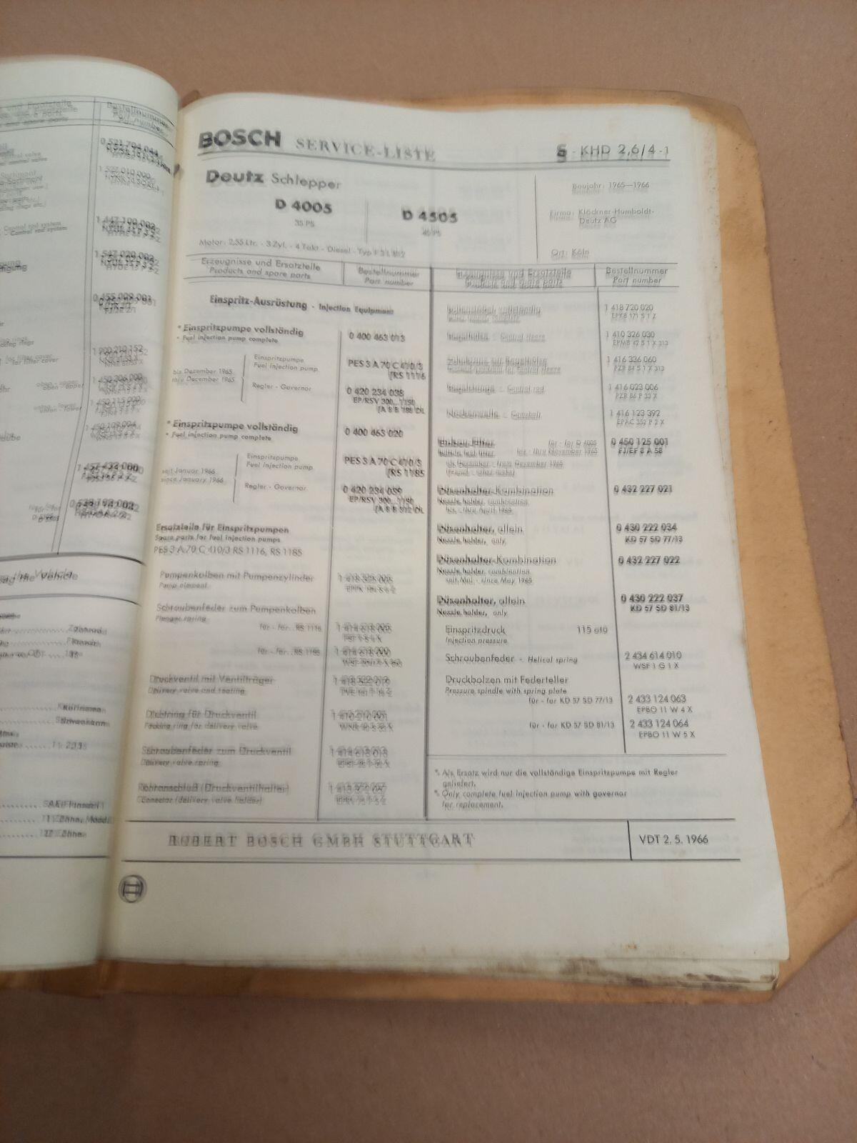 Bosch Service Liste Deutz Traktor für Bastler und Hobbytüftler, Heimwerker, Schrauber, Spezialisten, Oldtimer-Restaurierung. Landtechnik-Teile inkl. Versand für € 25,-, inkl. Versand nach Österreich € 30,-.