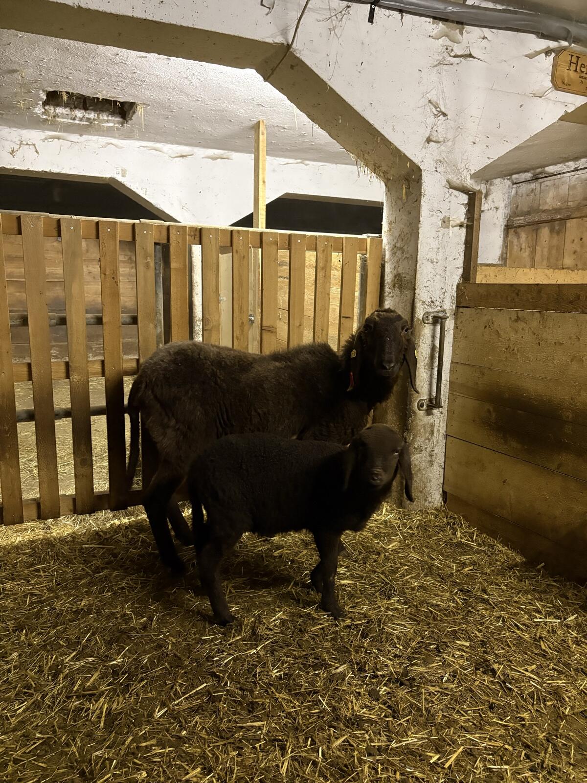 Verkaufe ein braunes Bergschaf, HB 2a bewertet, brav, mit 3 Monate altem Lamm (weiblich). Preis VHB.