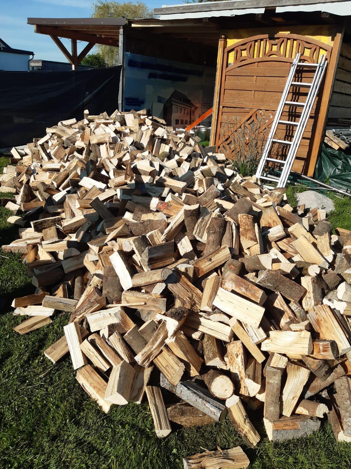 Trockenes Brennholz, gemischtes trockenes Brennholz (Fichte, Birke, Ahorn, etc.), € 70,- je Schüttmeter Raummeter geschüttet.