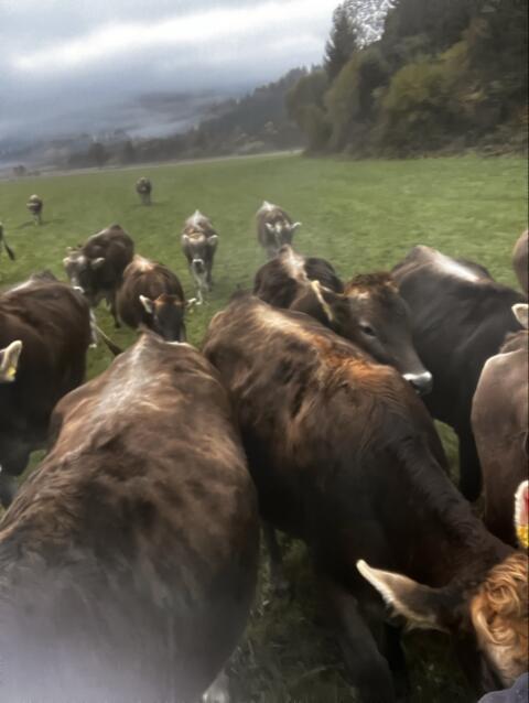 Springt gut, aus bewährter Kuhfamilie, aber ein wenig ältere Genetik, geboren am 07.01.2024. Am Foto zu sehen ist seine Mutter.