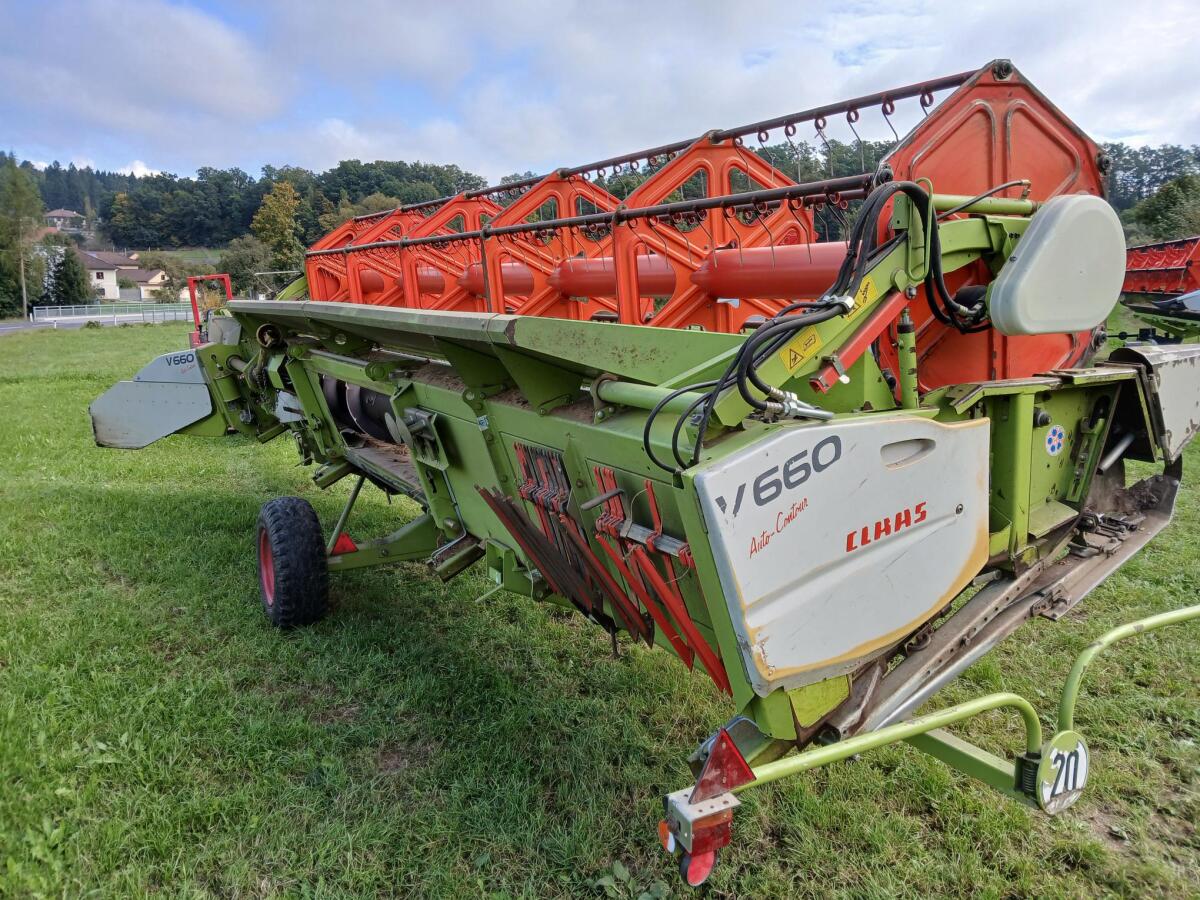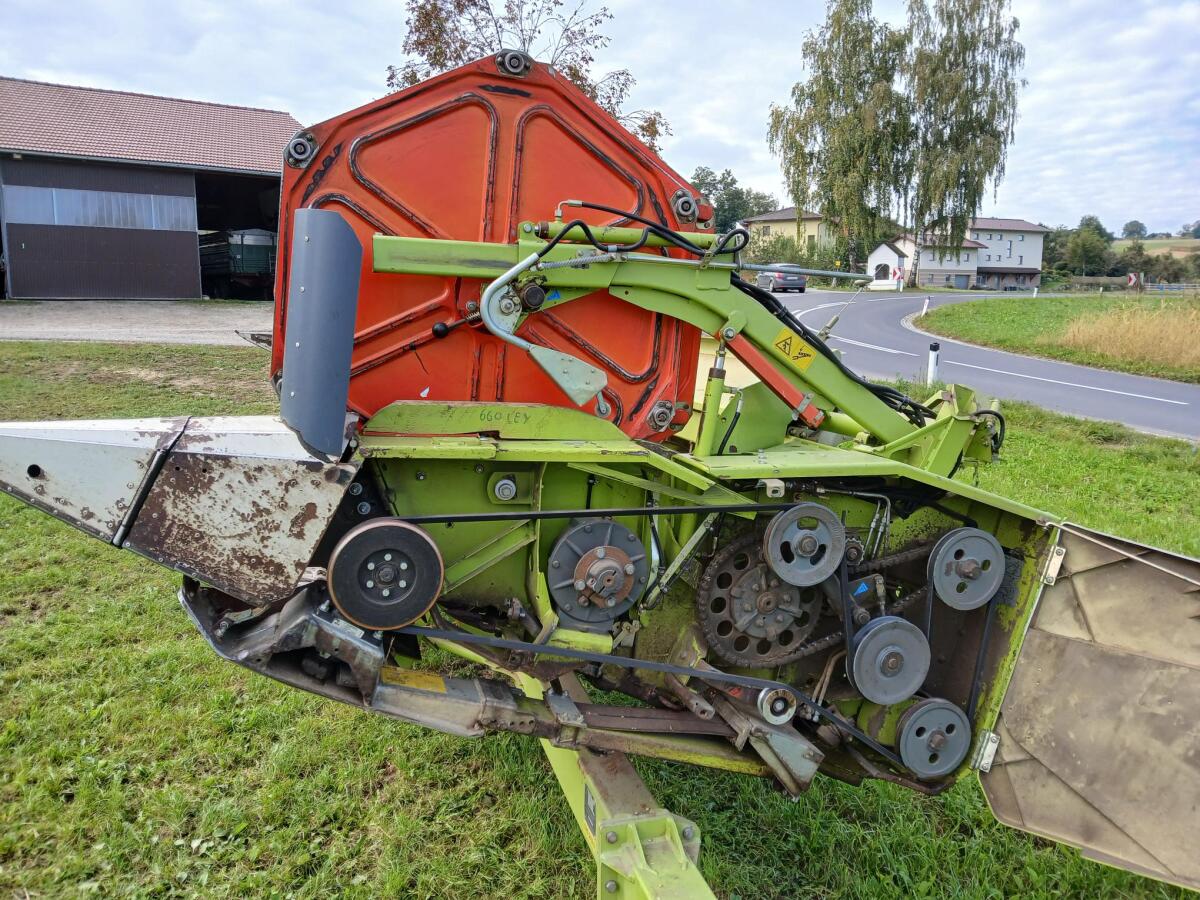 Verkaufe Claas Vario 660, Bj. 2011, hydr. Haspel, Haspeldrehzahl- und Höhenautomatik, Autocontour, Einachstransportwagen, mit aufgebautem Sojaflexvorsatz, Bj. 2018, Schuhmacher Messergetriebe sowie Sojafinger und Wechselschneidsystem, gleicht Bodenunebenheiten bis 15 cm aus, mäht Soja bis 3 cm tief verlustfrei, Gleitplatten aus Federstahl, guter sofort einsatzbereiter Zustand. Preis ist inkl. 20% ausweisbarer MwSt.