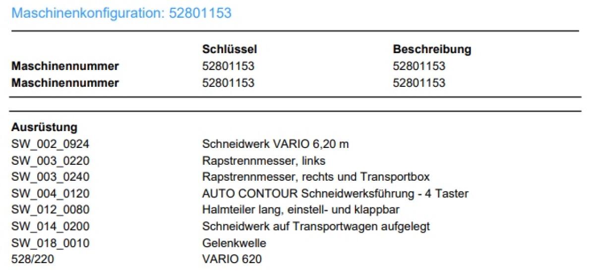| Kategorie / Marke | Erntetechnik AckerbauErntevorsätze |