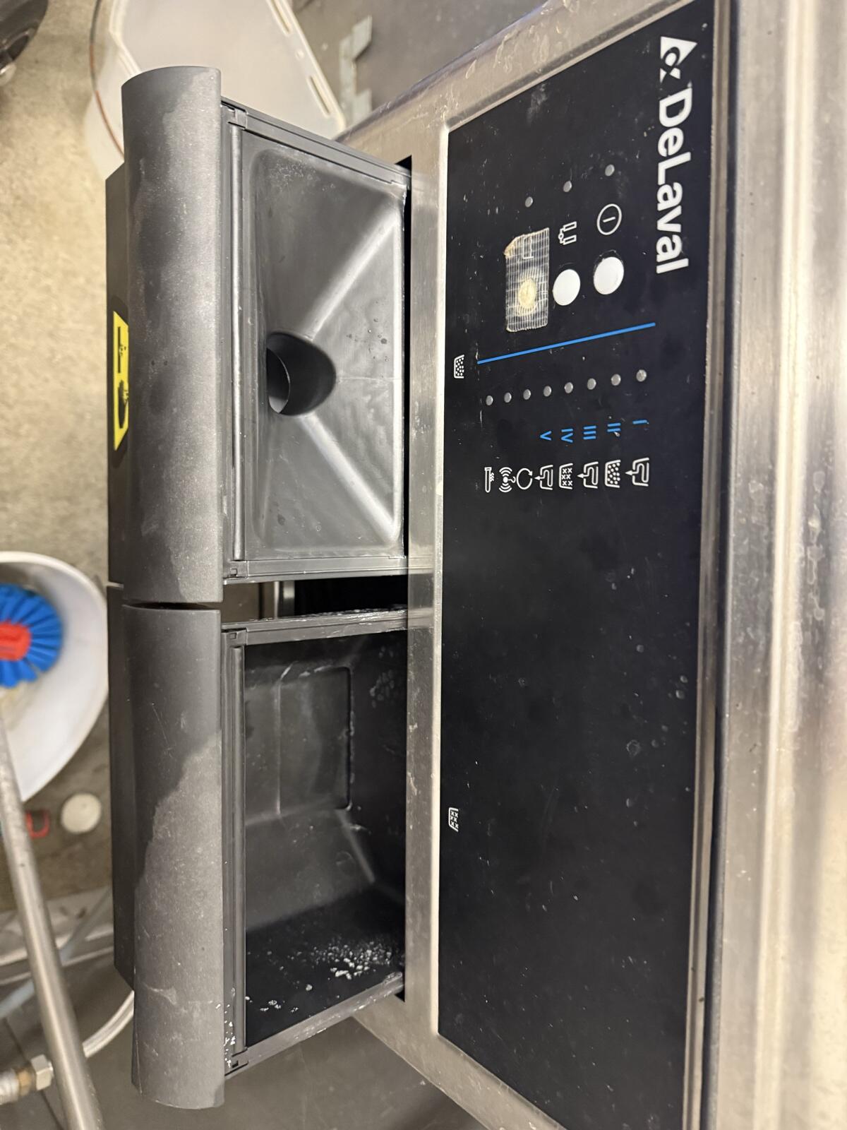 Verkaufe einen voll funktionsfähigen und sehr gut erhaltenen Reinigungsautomaten der Marke DeLaval (Modell HyCLEAN / C-Serie). Die Steuerung ist in einem robusten Edelstahlgehäuse untergebracht und ideal für die automatisierte Spülung und Reinigung von Melkanlagen.