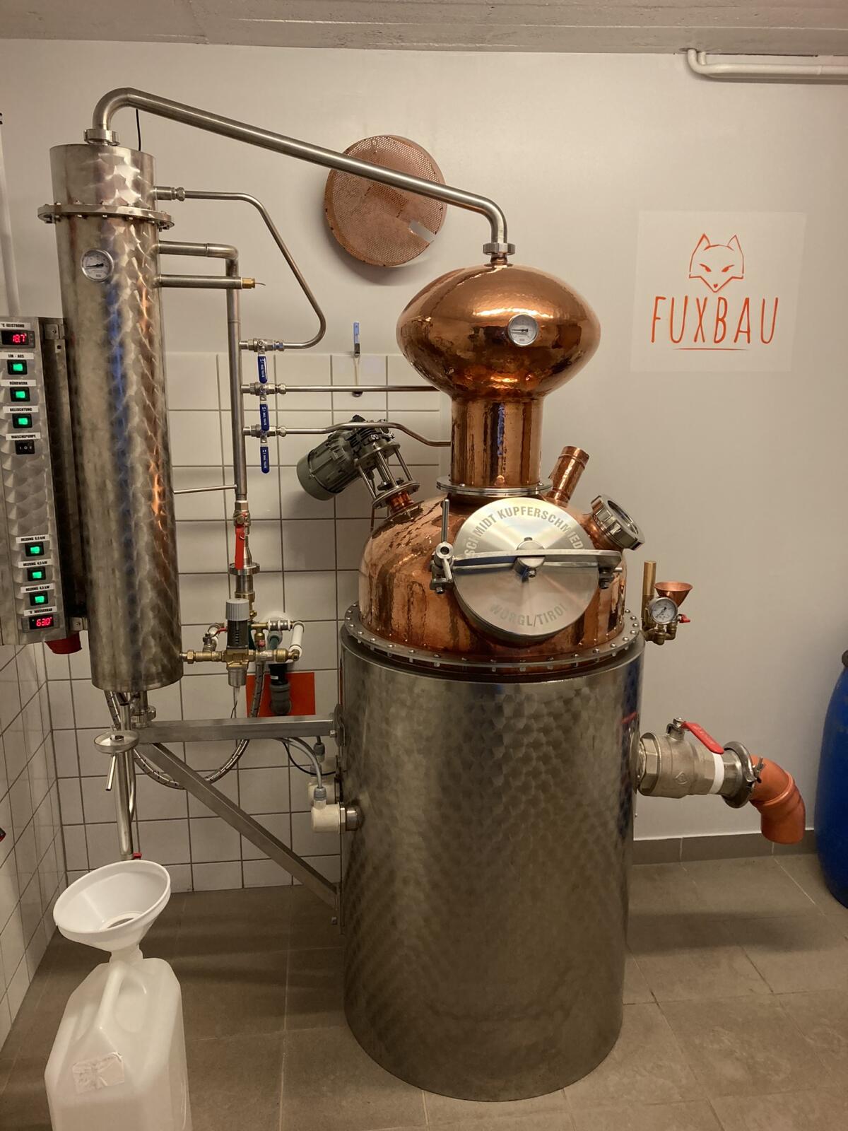 *Kugelhelm aus Kupfer *Wasserbad aus Edelstahl mit Isoliermantel *beheizt mit Strom, 15 KW, 32A, mit Regelsteuerung *Steuerkasten mit zentraler Schaltung aller elektrischen Bauteile Digitale Anzeige der Temperaturen *elektr. Rührwerk *Reinigungssystem mit Spray Balls *Einfülltrichter *CIP Reinigungsset mit Umlaufpumpe, Filter und Schläuche *Sicherheitsschalter für Abschaltung wenn Kühlwasserzufuhr ausfällt *Aromakorb zum einhängen *Beleuchtung in der Brennblase mit Schauglas *Rohrbündelkühler mit Kühlwasserst. (Danfoss Regelventil und Durchflussmengenbegrenzer) *Alkoholvorlage aus Edelstahl oder Kleinverschluss Preis Kleinverschluss: 13000 € Preis ohne Kleinverschluss: 11000 € [Telefonnummer entfernt]