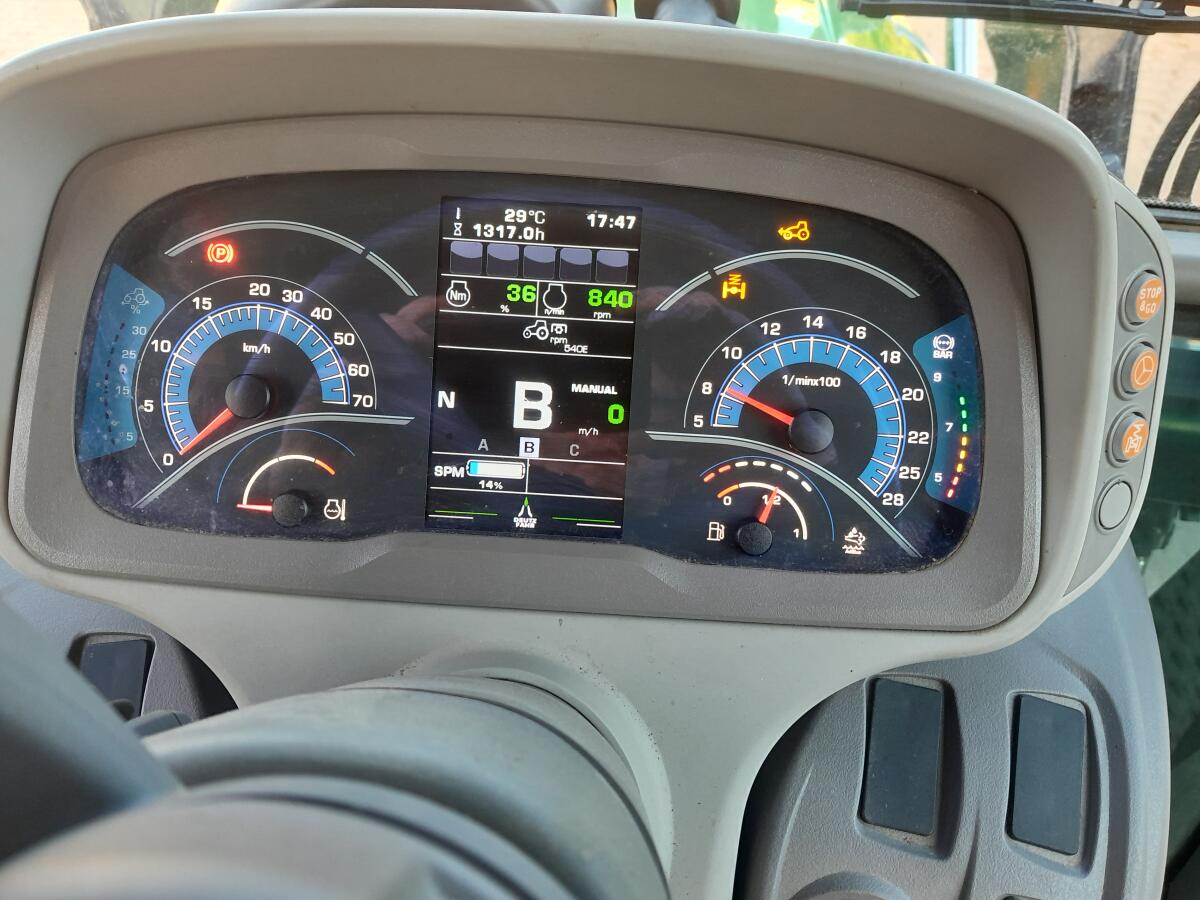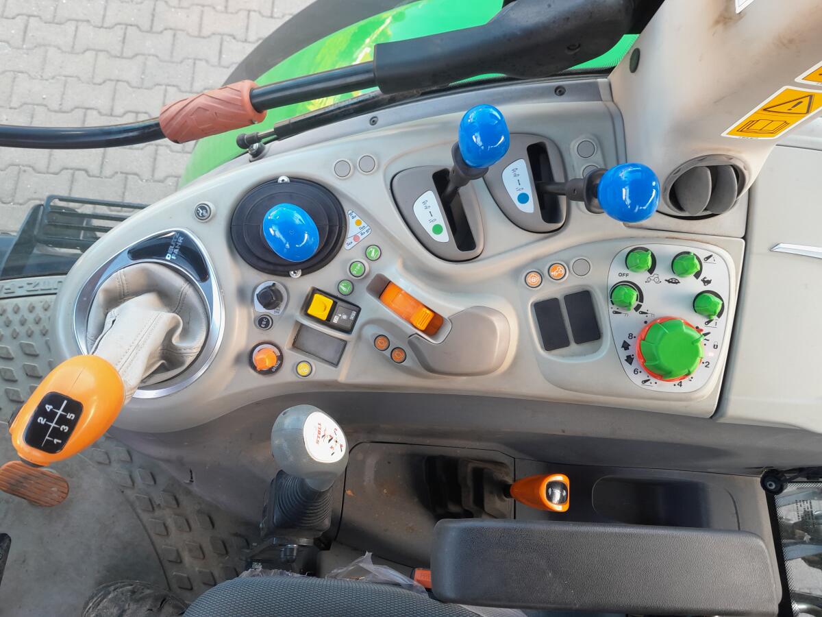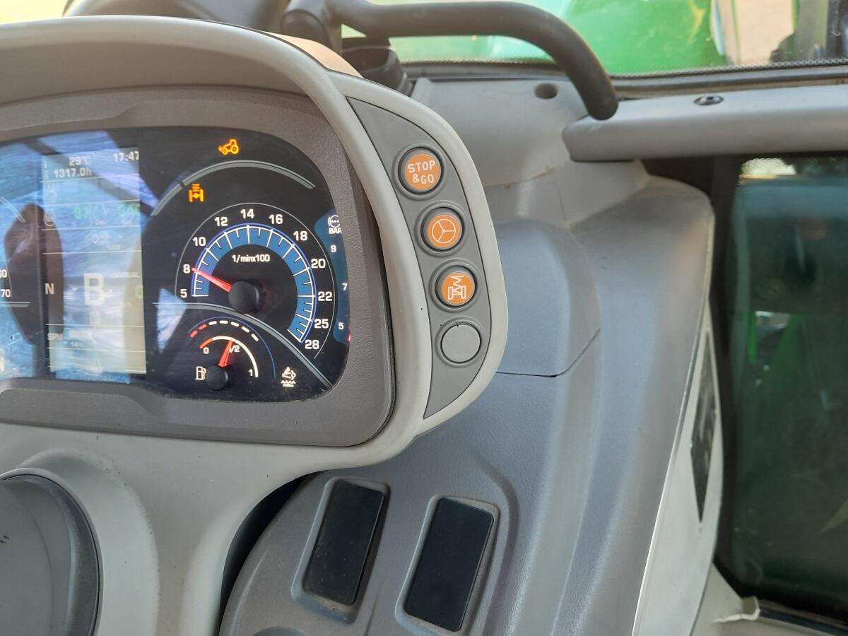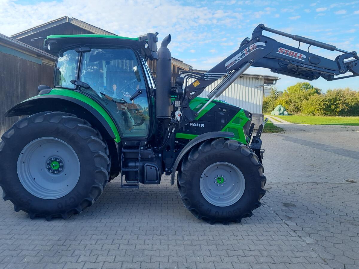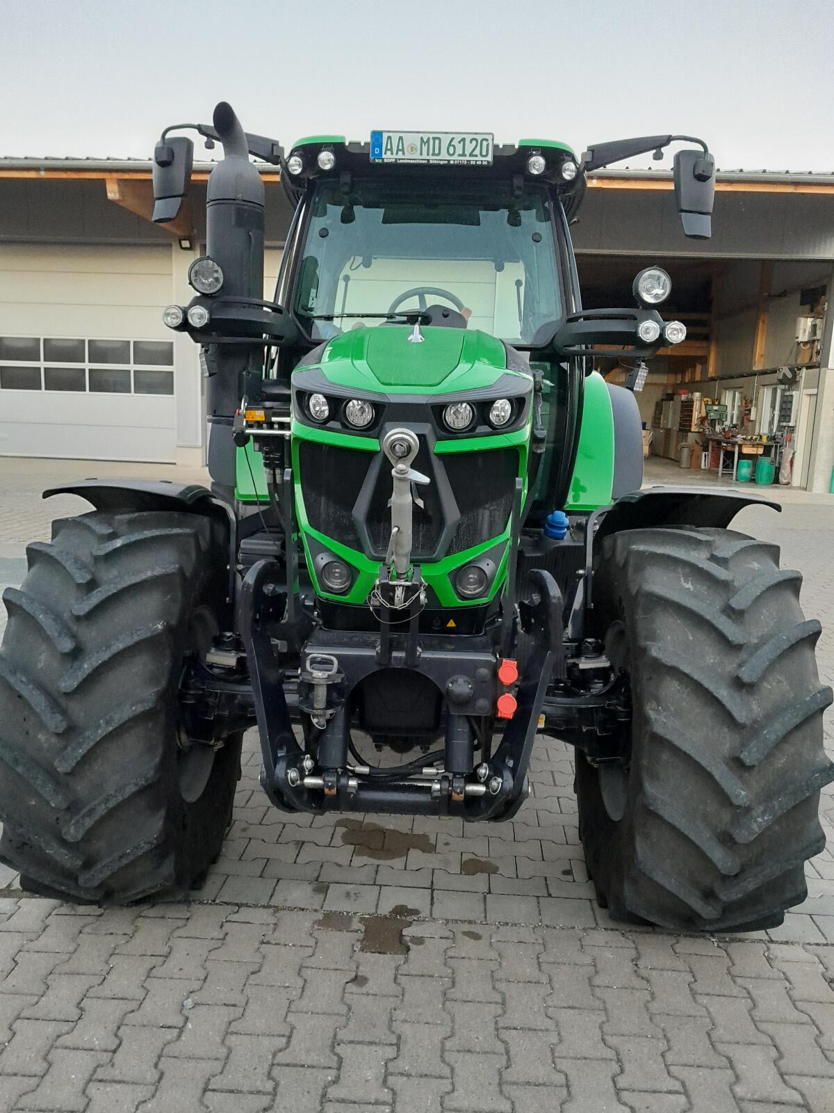 Deutz Fahr 6120, Lastschaltgetriebe 30V 30Rw Gänge, 3 Lastschaltstufen, Stopp&Go, SSD, LoadSensing, Vorbereitung für I Monitor, Kamera und Spurführung. Wurde als Pflegeschlepper eingesetzt.