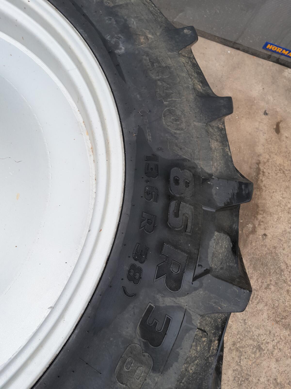 Pflegerräder, Kulturreifen für Deutz-Fahr Agrotron, Marke Pirelli, 1,50 m Spur für 2 Maisreihen, hinten 340/85R38 50%, vorne 340/85R24 50%, vollverschweißte Felgen, keine Risse und Beschädigungen.