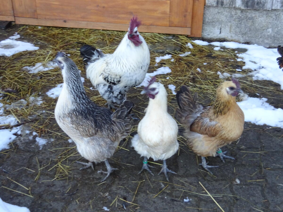 Besondere Rasse aus China. Wird in der TCM verwendet. Schwarzhuhn. Das Fleisch ist besonders gut. Die Eier sind qualitativ sehr gut. Frühreif. Verfügbar sind ein Hahn und drei Hennen. Von Gabriel Rauch als hanf erhalten, jedoch waren alle silber. Nur in der Nachzucht gab es eine Henne in hanf, ein Zeichen für ungeordnete Farbschläge. Bilder vom 21.2.2026. Tiere von 2024 und 2025, alle beringt. Alle aus Naturaufzucht. Bio-kontrolliert seit 1993. Schwermetalle, Radioaktivität und Mykotoxine reduziert.