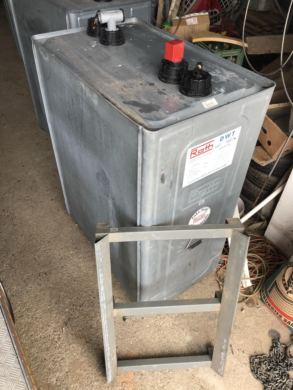 Doppelwandig 1.000 l Dieseltank, Heizöltank, Inhalt 1.000 l, 1 Stk., € 350,-. Verzinkte Ausführung, doppelwandig. Tank im Top-Zustand. Maße: L 108 cm, B 70 cm, H 160 cm, mit dem Aufsatz.