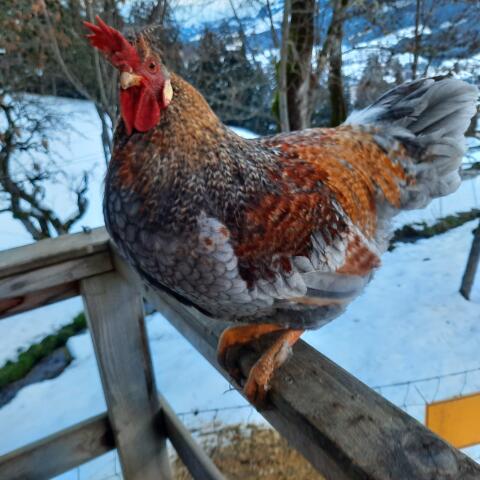 Verkaufe drei Hühner, der Hahn rechts, die zwei Hennen mittig und links. Die drei sind ca. 4 Monate alt. Bei Interesse gerne melden.