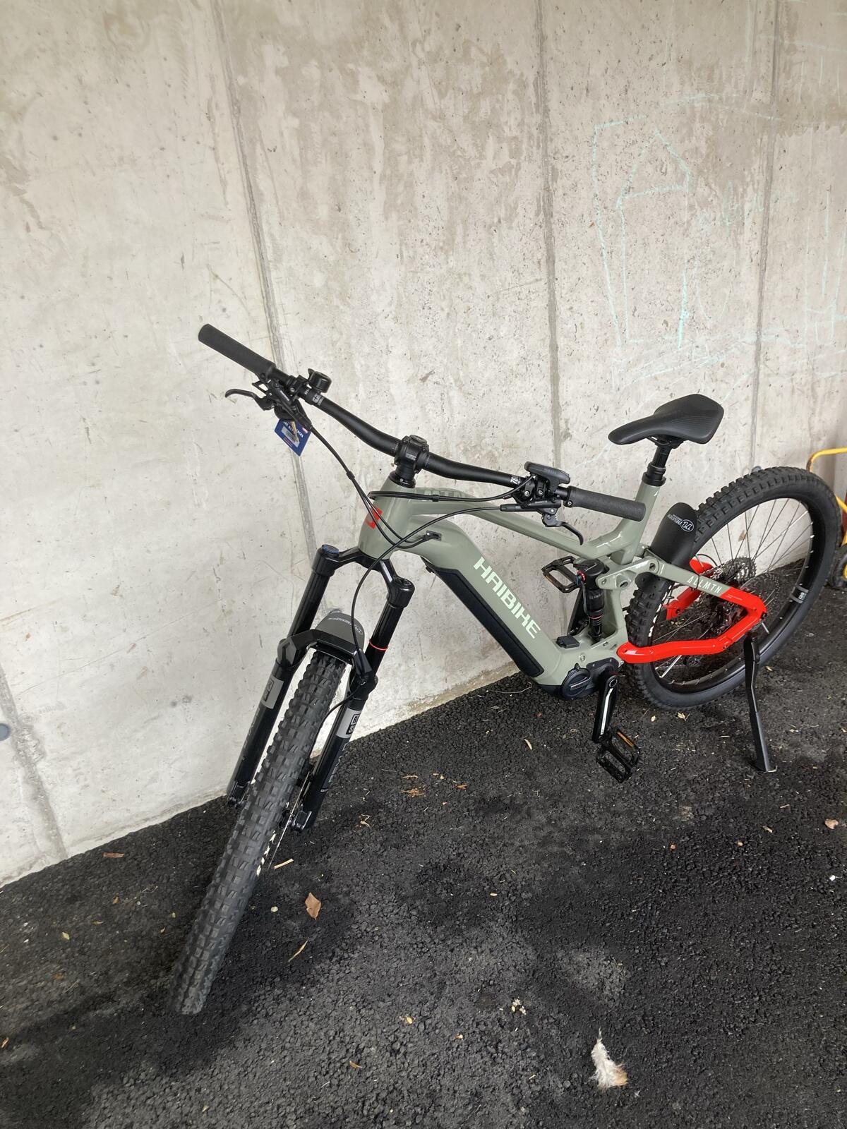 E-Bikes, E-Fully Mountainbikes, Haibike AllMtn 4, E-MTB Fully, 29/27,5", 720Wh Yamaha PW-X3, khaki/rot.