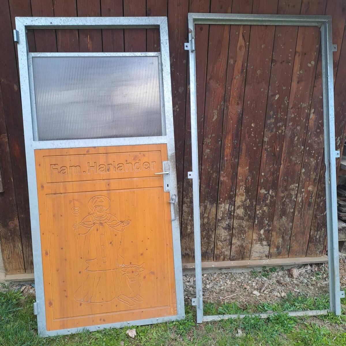 Verkaufe Edmayer Stalltür, mit Fenster-Schubteil, kann ganz geöffnet werden. Holzfläche mit Initialen kann man austauschen. Rahmenmaße H = 225 cm, B = 104 cm.