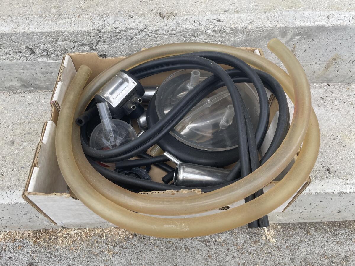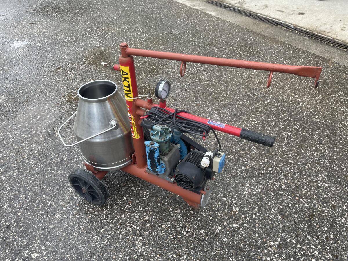 Verkaufe eine Eimer-Melkmaschine, fahrbar, MOSER AKTIV mit Melkeimer ca. 20 l und Melkzeug. Die Maschine wurde über 20 Jahre nicht mehr benutzt, die Vakuumpumpe funktioniert. Baujahr unbekannt. Verkauf wie besichtigt, ohne Gewährleistung.